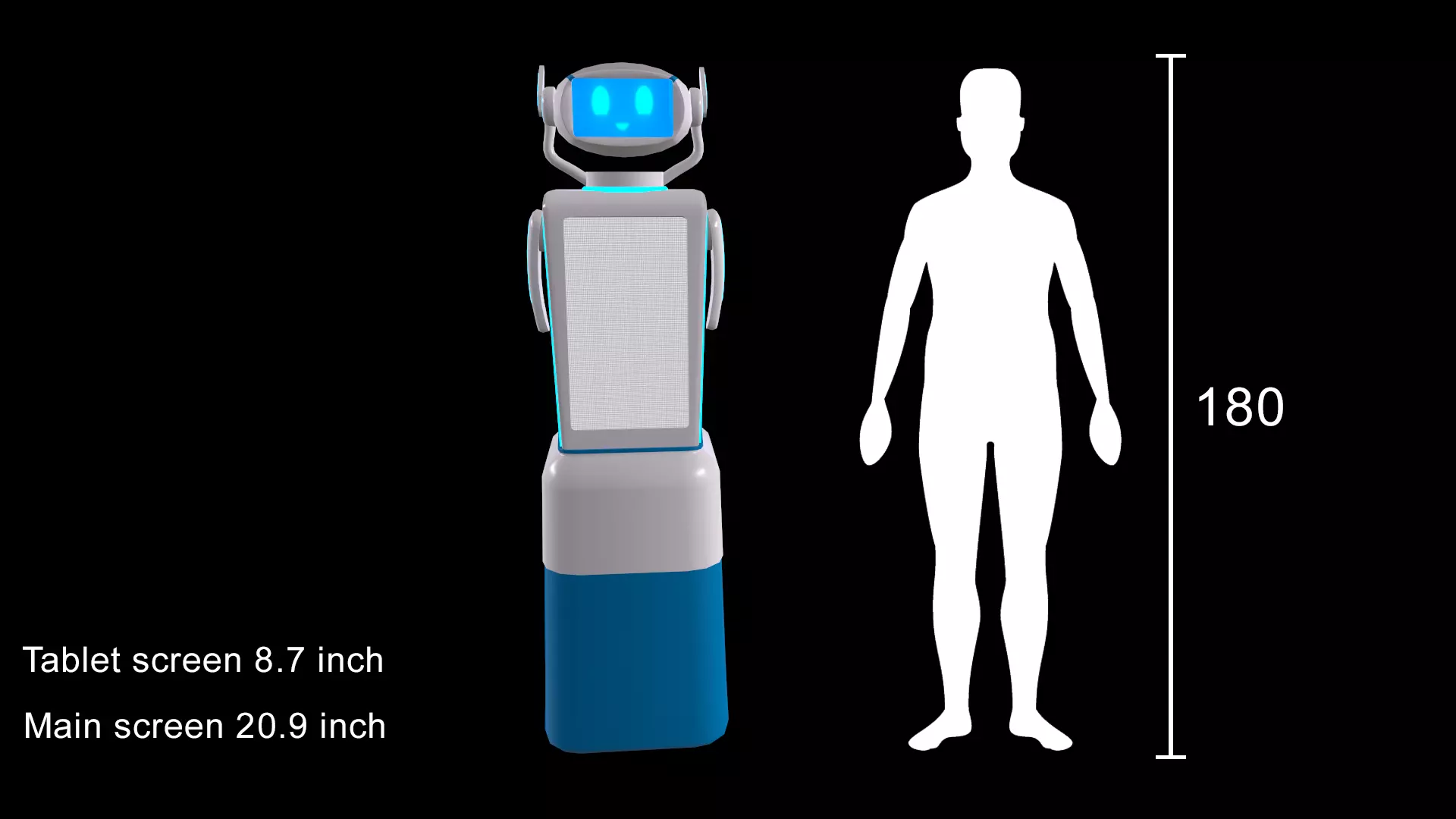 Model dimensions: H= 180 cm Main screen= 53.13 cm * 29.89 cm Head Tablet= 12.58 cm * 22.14 cm