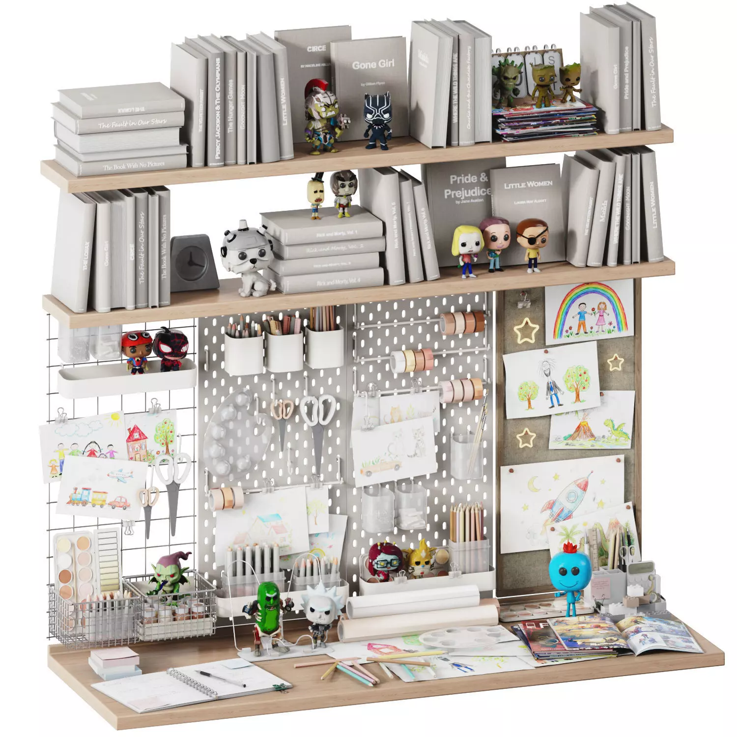 The model has material settings that define how surfaces look (color, shine, transparency, etc.).