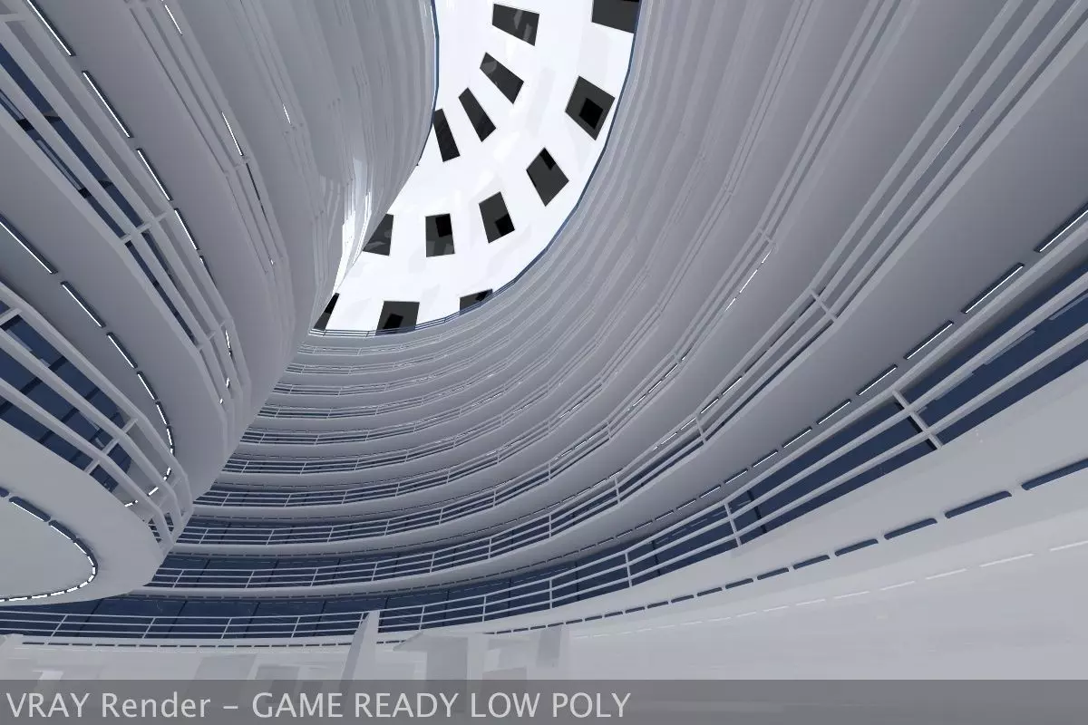 - inner building - 11 floors with elevator and emergency exit staircase / each level has 4 separate rooms- outer building - 11 floors with elevator and emergency exit staircase and also a main exit/entrance- connecting bridge on the top floor between the inner and outer building- the main building element surrounds the whole interior - cupola design with large windows- the main building can be part of a mighty complex and can be rendered from outside- there are relax benches and tables on the ground level- Cinema 4D and Vray materials- preview images rendered with VrayforC4D- 15 camera setups- light setups - ONLY IN CINEMA 4D- high resolution 2048x2048 / 2048x4096 / 3840x2160 textures- 9 extra high-res textures for the racks- objects are named properly and organized in the .c4d / .fbx / .dae files- all doors in the complex can be animated / axis points are set to work them easy- depending on your viewport renderer the first load of the scene might take 1-2 minutes - please be patient- depending on the file format and your software some materials need to be reapplied- opens best in Cinema 4D