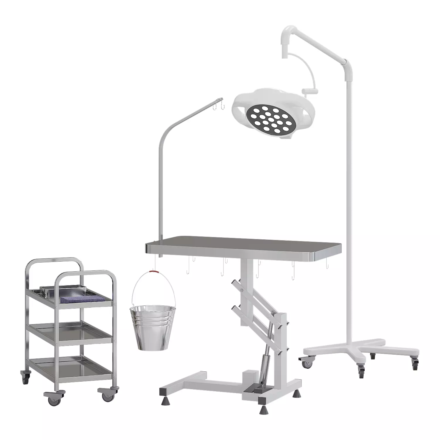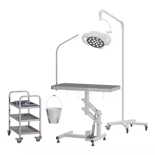 A ready-made veterinary operating area for imaging clinics and medical facilities.The set includes the main operating table and the necessary equipment for the basic surgical scene.