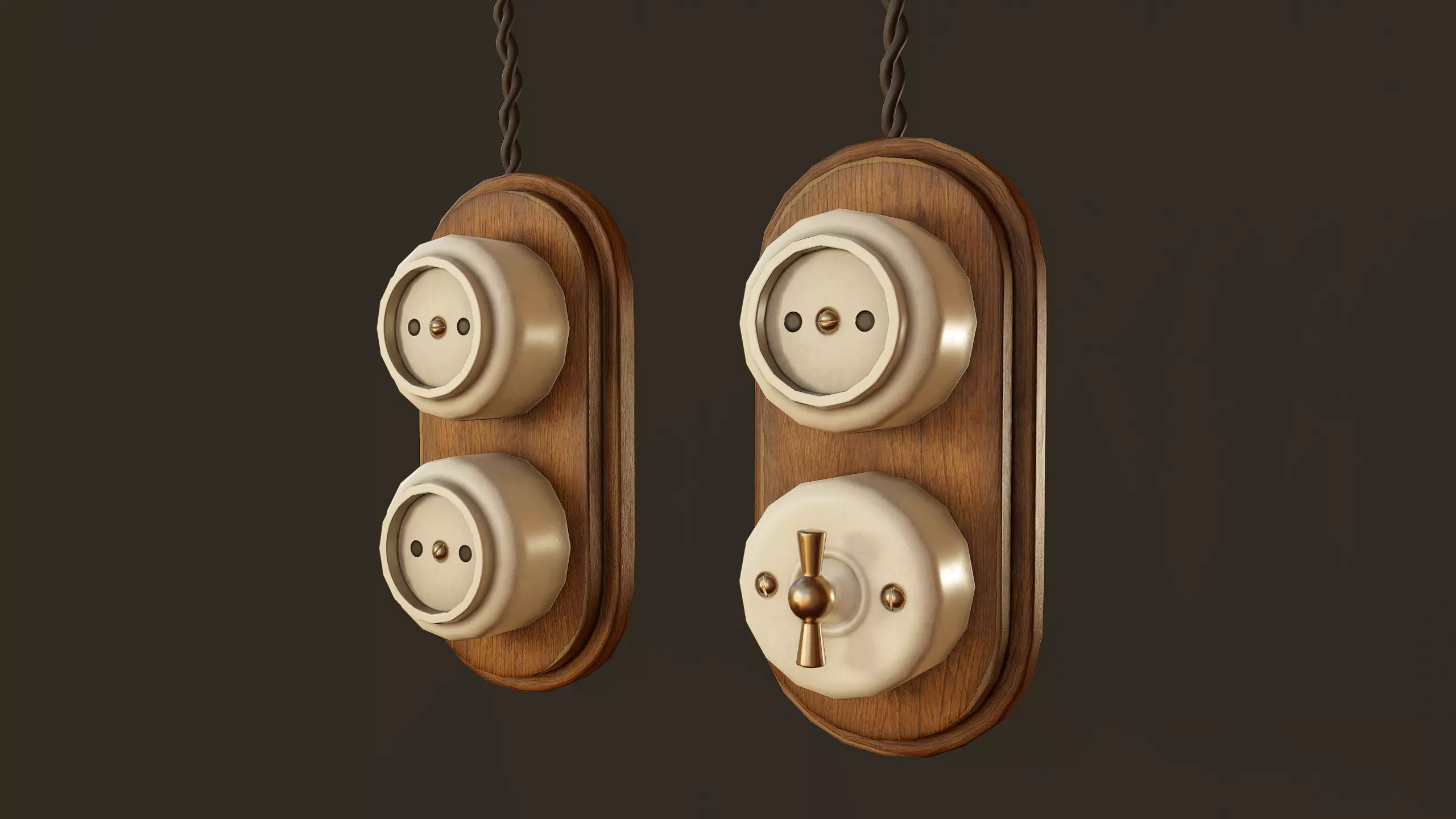 Vintage Light Sockets and Switches - PBR Game Ready Low-poly 3D model