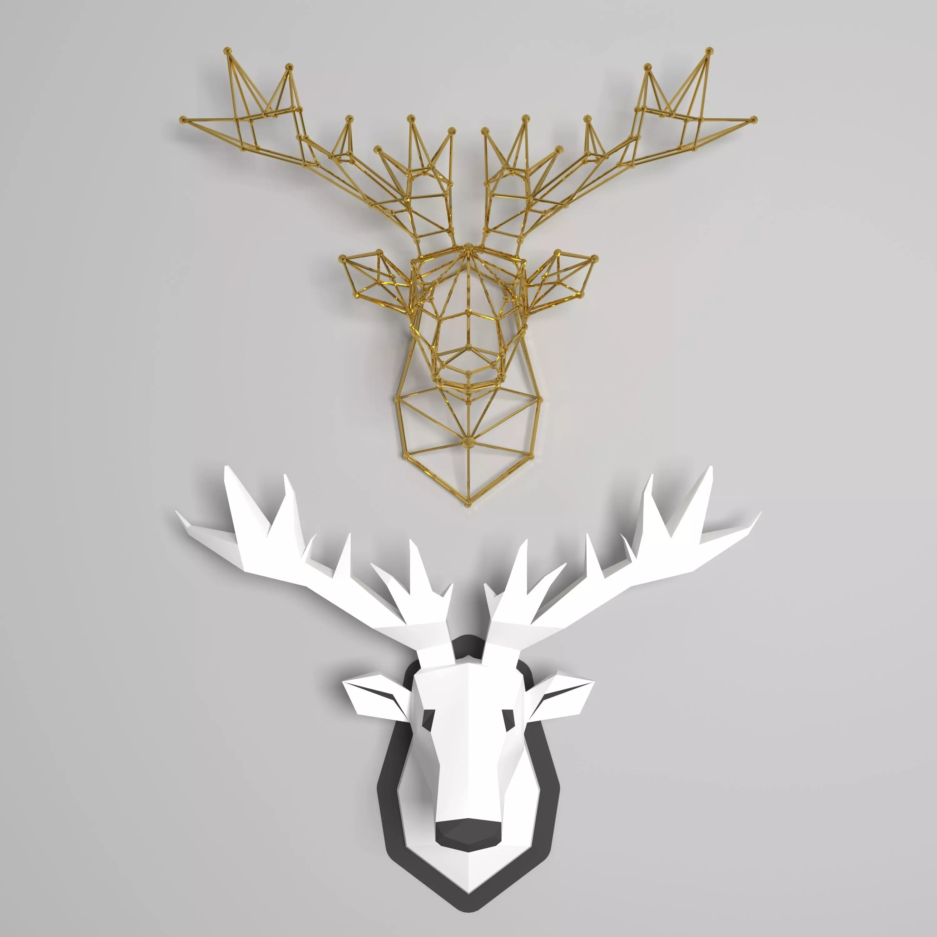 wall-mounted moose head.minimalistic style.1-plaster.2-metal with gold coating.
