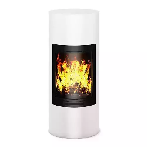 Modern looking white fireplace in cylindrical shape. This 3D model contains illuminative fire material.