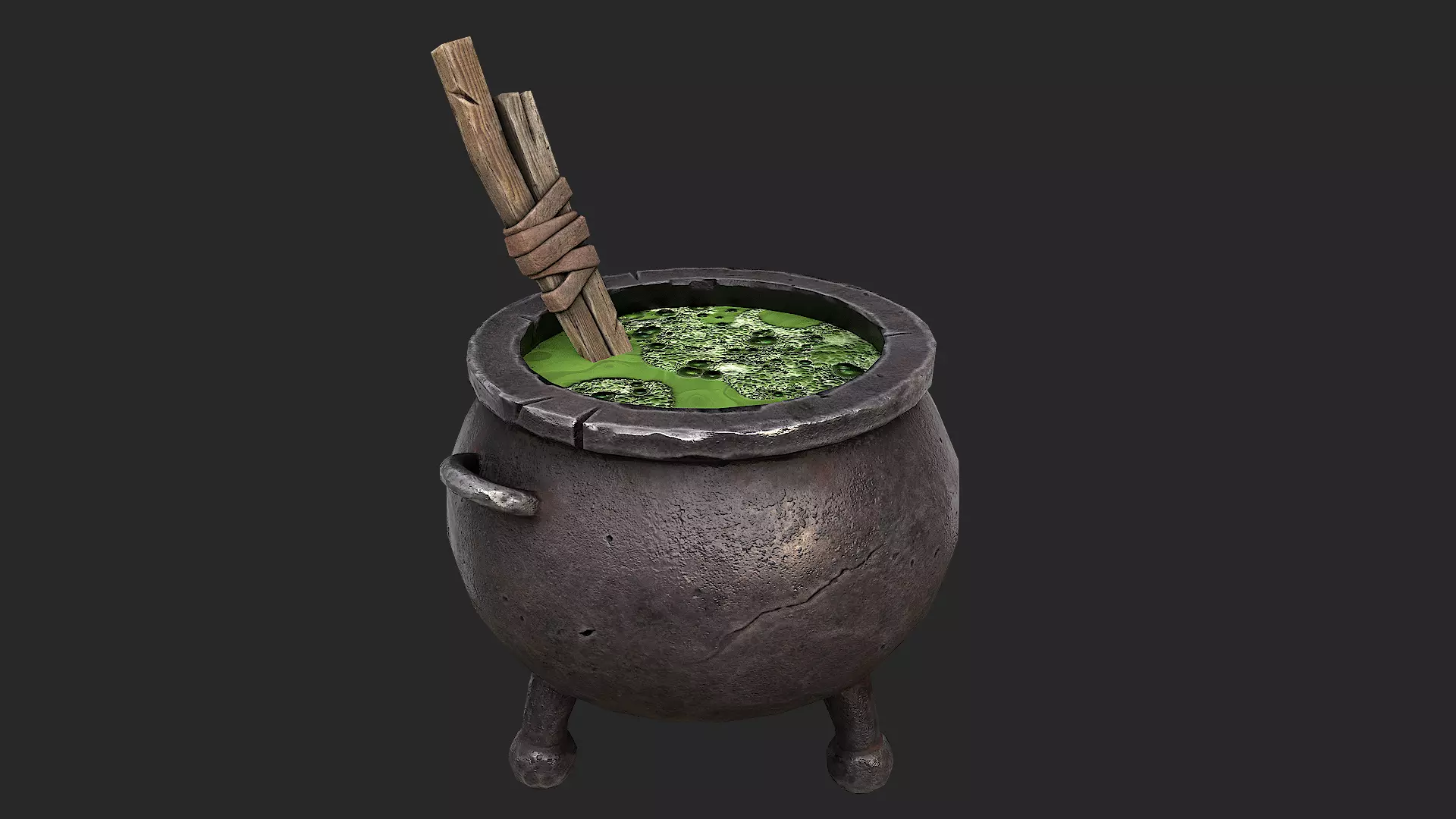 Game ready model.Stylized and detailed Witch's Cauldron fully textured, sculpted and rendered with Physical based rendering (PBR) - Shown images have been rendered in Marmoset Toolbag .The models contains lods, detailed information on the images.