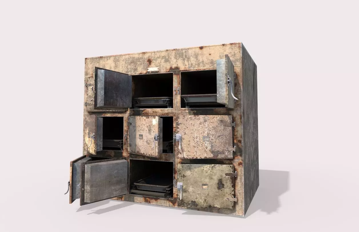 Realistic Old , Worn Morgue Model. Model is very realistic.It has 3 PBR material. Maps are diffuse-specular-glossiness-height and normal. Also, PBR Metallic-Roughness ( Basecolor-Metallic-Normal-Roughness-Height ) workflow has been added. Model's textures has two sizes; 4096x4096-2048x2048. All maps are PNG formats .