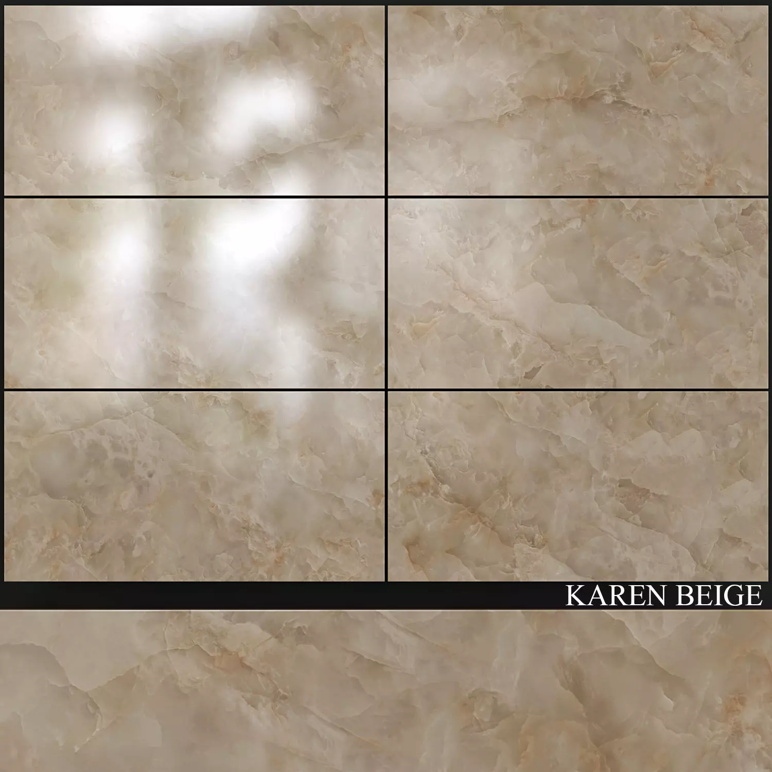 6 types of tiles are presentedA new look and a fresh breath is possible for your bathrooms with Karen. With its 60x120 size, white, beige and natura color options with a polished finish, Karen extends the spacious feeling in your bathrooms.