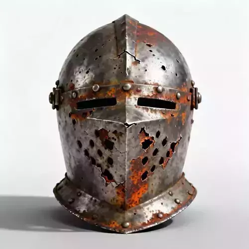 The Overall Concept This asset is a hyper-realistic archaeological find. It depicts a classic medieval knight's helmet (resembling a close helm) that has been lost to time, making it perfect for a dungeon environment, a museum display, or a Souls-like dark fantasy setting.