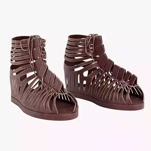 Highly detailed 3D model of Roman caligaelegionary military footwear. The model features accurately shaped leather straps, historically inspired construction, and a fully modeled sole with iron hobnails. Materials reflect natural leather behavior, ensuring the sandals fit seamlessly into Roman armor sets or historical 3D environments.