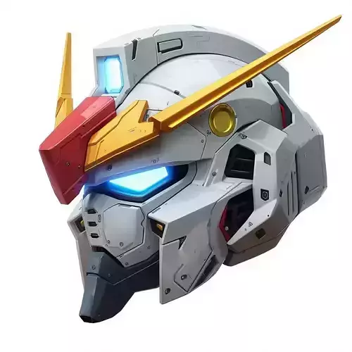 This is a high-quality 3D model of a cyber-mecha commander helmet, featuring a sophisticated, high-tech design inspired by advanced robotics and futuristic armor. The asset is finished in a pearl-white and gold armored shell with crimson-red accents, representing a leadership-tier piece of equipment for giant mecha pilots, futuristic knights, or elite robotic commanders. It is designed with professional-grade geometry and PBR (Physically Based Rendering) materials, showcasing a clean, high-gloss finish suitable for cinematic hero assets or high-fidelity game characters.