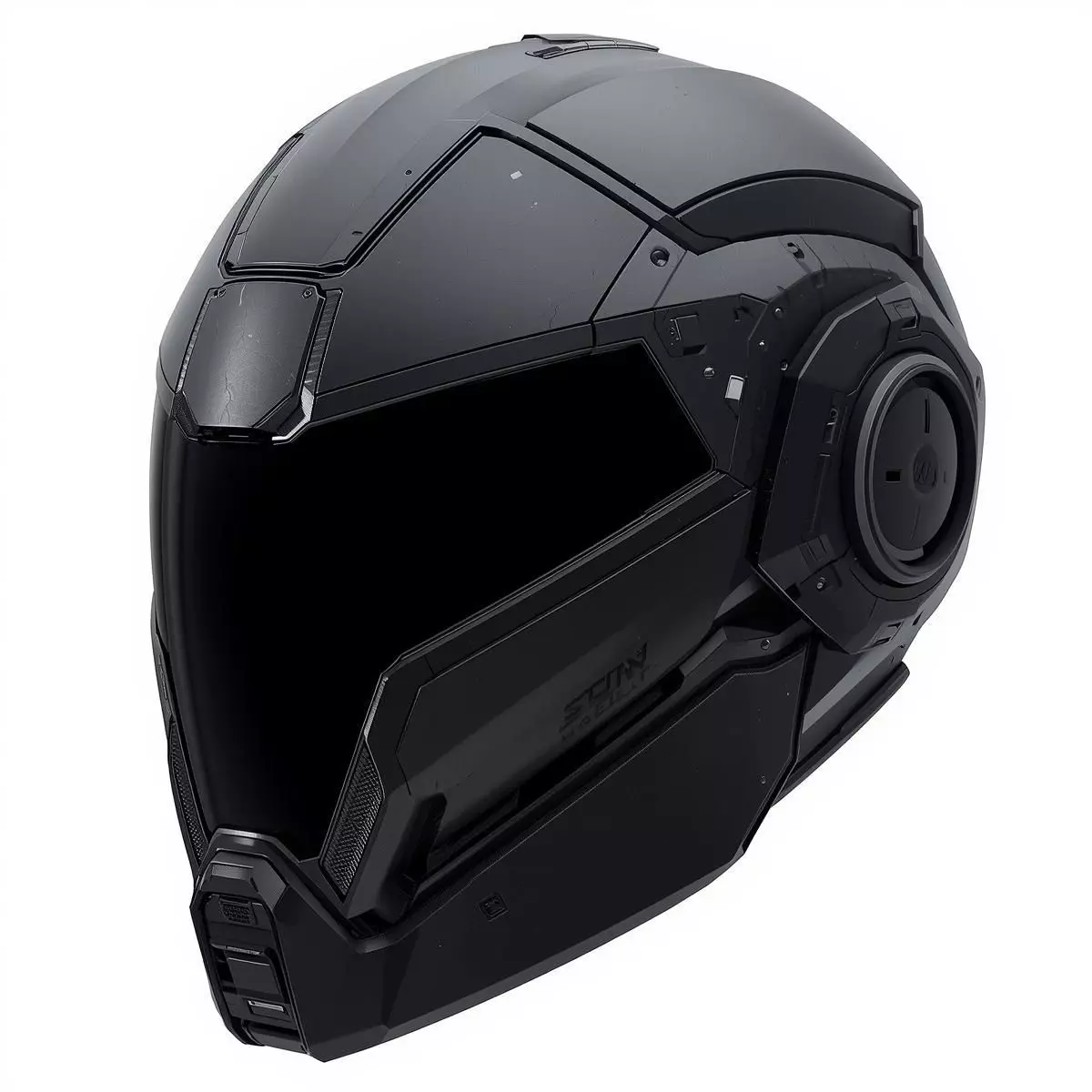 Key FeaturesStreamlined Multi-Layer Shell: The helmet body is composed of interlocking composite plates with a non-reflective matte finish, featuring precision-cut panel lines and a low-profile silhouette.