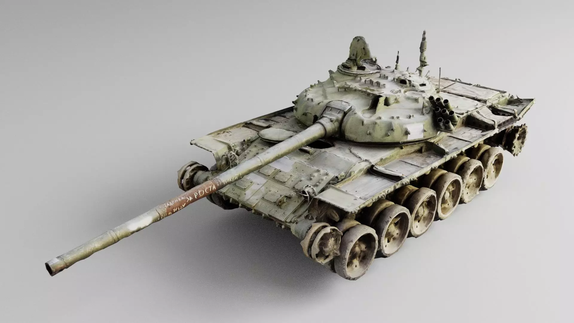 Russian T-72 tank destroyed by Ukrainian army during russian occupation of Ukraine, 2022 war in Ukraine. Please support Ukrainian artists.This is an optimized 3D model from 3D scan. Perfect for GPU rendering, use in Real-time engines, games etc.The resolution for each map is 4096x4096. You may find a source 3D scan model in our products list.Please check our other products and make sure you didn't miss collections and assets with similar type of objects to get better price offer with buying them as a collection.