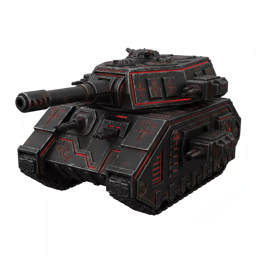 Tagshorror tank, gothic vehicle, occult siege, military asset, armored tank, dark fantasy, 3d model, game asset, weathered metal, glowing red, supernatural, sci-fi horror, war machine, heavy armor, cinematic prop, realistic, demonic, battle tank, macabre, 3d prop