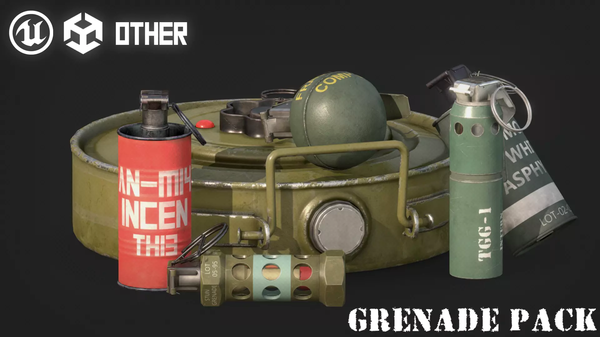Texture Grenade in 4096x4096 px texture has 3 different types for unreal engine also for unity and for other.