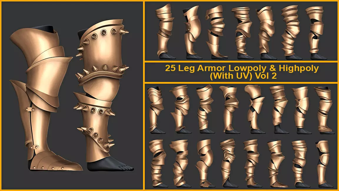 Leg Armor Highpoly and Lowpoly (With UVs) Vol 2