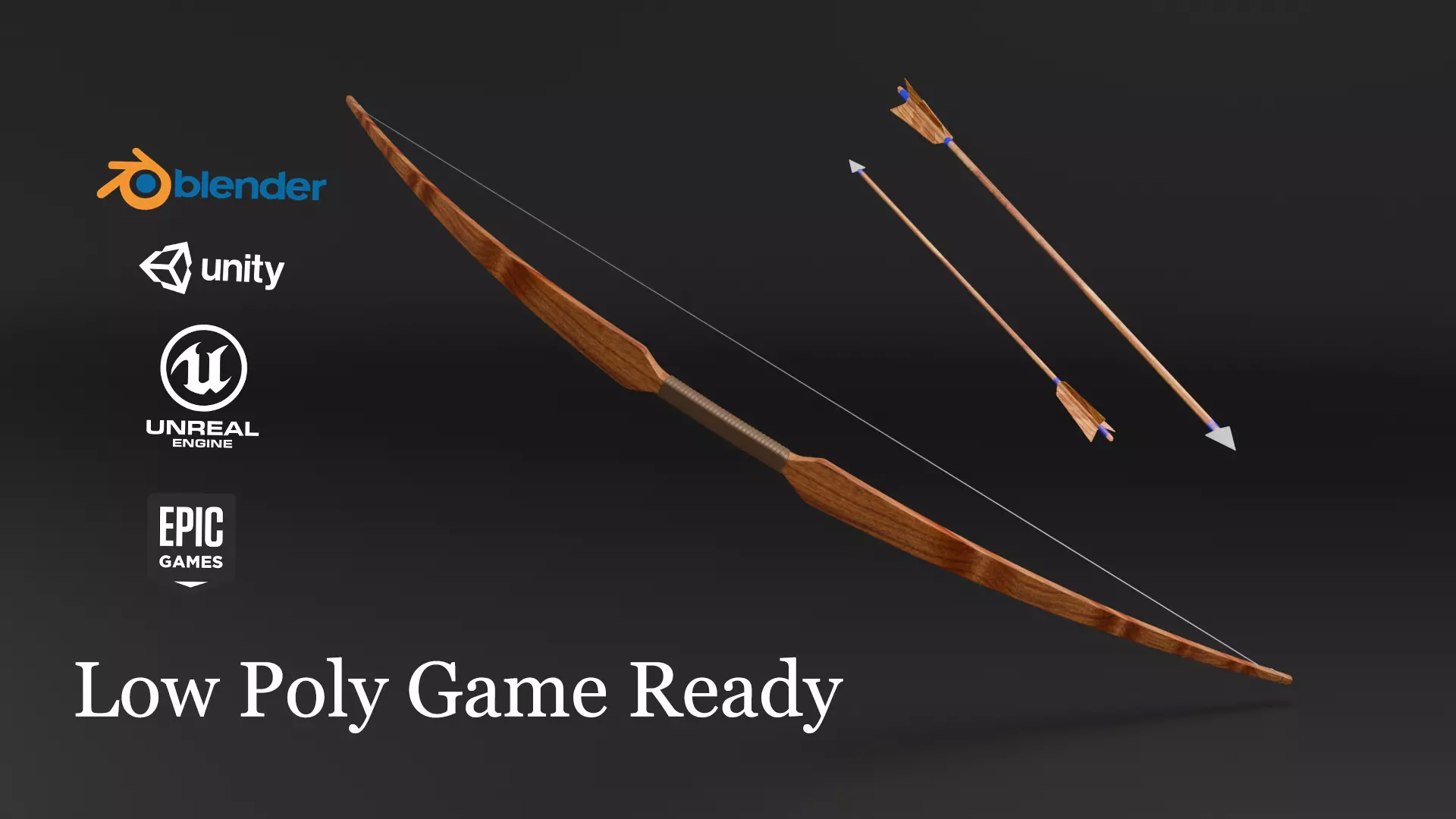 This is a detailed, low poly bow and arrows set, perfect for use in games and interactive media. The model is optimized for real-time rendering, making it ideal for game engines like Unity, Unreal Engine, and other 3D applications. The bow features a finely crafted wooden design with a realistic string, and the arrows are also designed with attention to detail, including arrowheads and fletching.