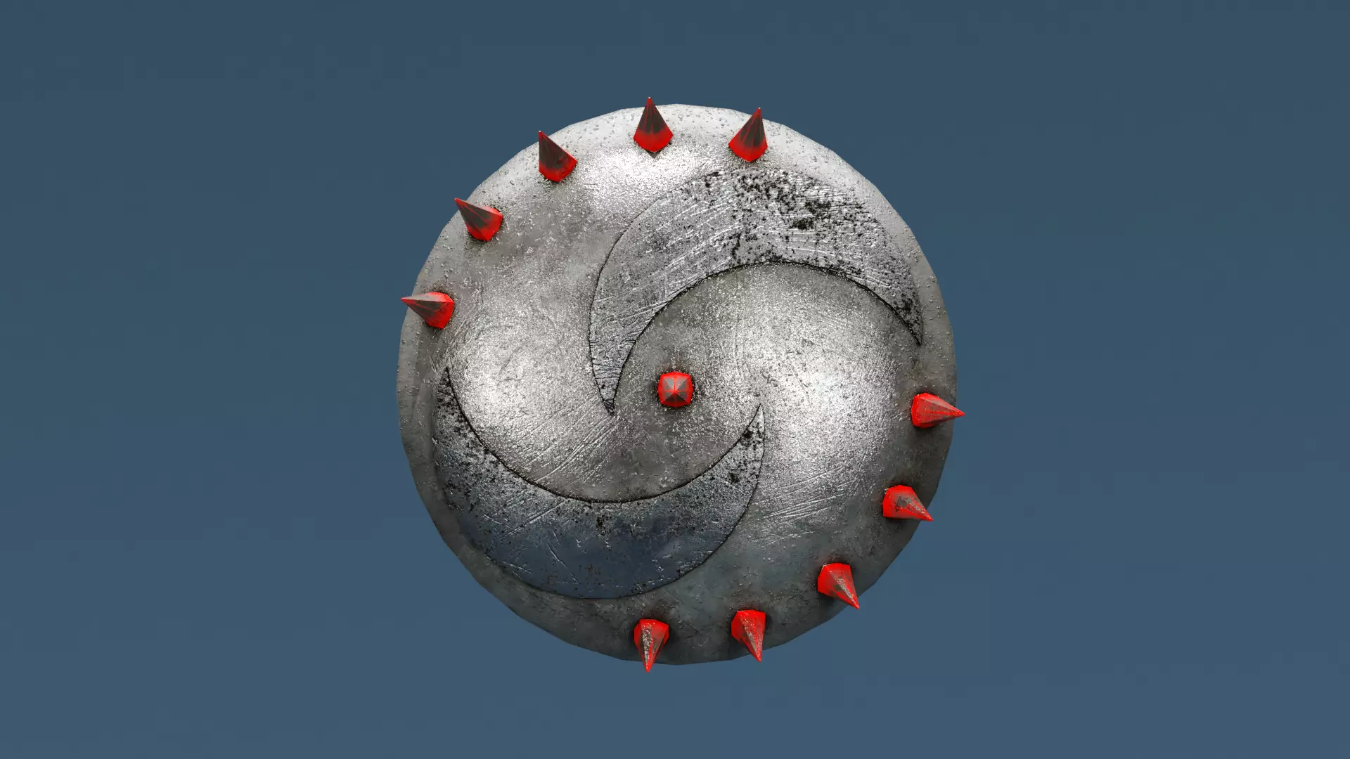 Medieval shield made of metal with thorns and two moons modeled in Blender with textures made in Substance Painter.