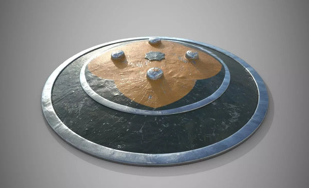 Mamluke Shield modeled after historical refrences.. made into different pieces all in one object(frontside, backside,metalparts,leatherstrips) modeled in blender and textured in SubstancePainter.. textured in 3 texture sets (main shield,leatherstrips,metalparts), with all five PBR textures included (base color,roughness,metallic,height,normals).. Frontside is textured as painted steel... while the backside is covered in leather