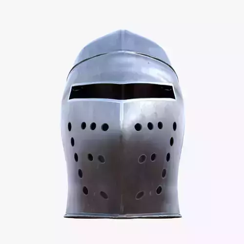 This model represents a high-quality polygonal medieval great helm, created with accurate scale and proportions for professional 3D pipelines, including real-time engines and offline rendering.