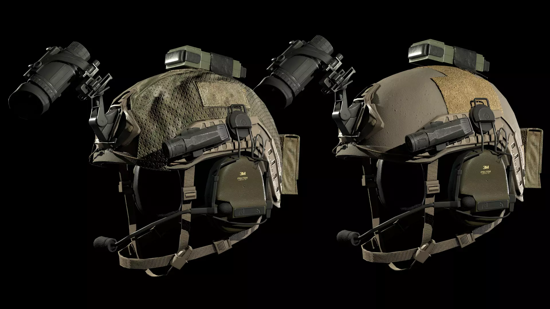Included: Game Ready Model. / Three 2k texture sets. / FBX format. / OBJ format. / .ma format (textured). (Night Vision Device seen in the video is not included, you can buy that separately)