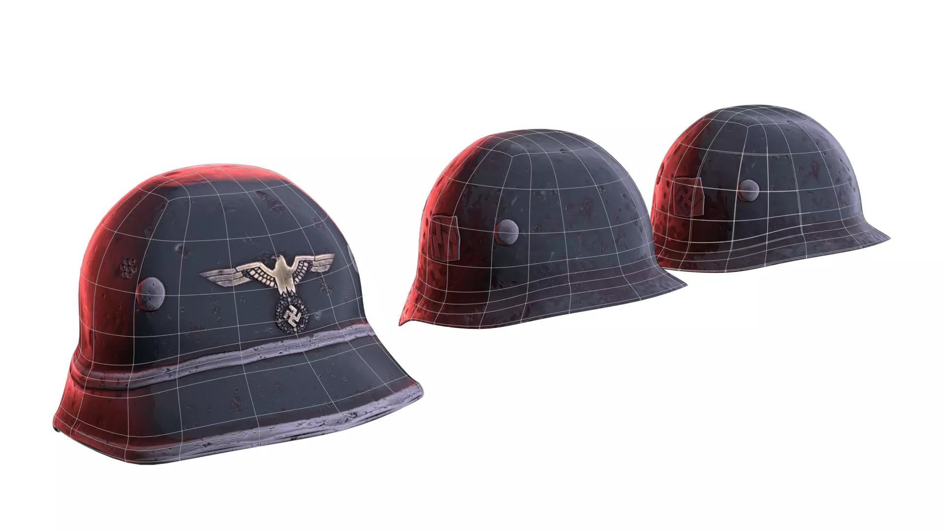 This WWII-Themed Helmet Pack includes three variations of a historically inspired military helmet, designed for use in war-themed video games, simulations, or cinematic scenes.