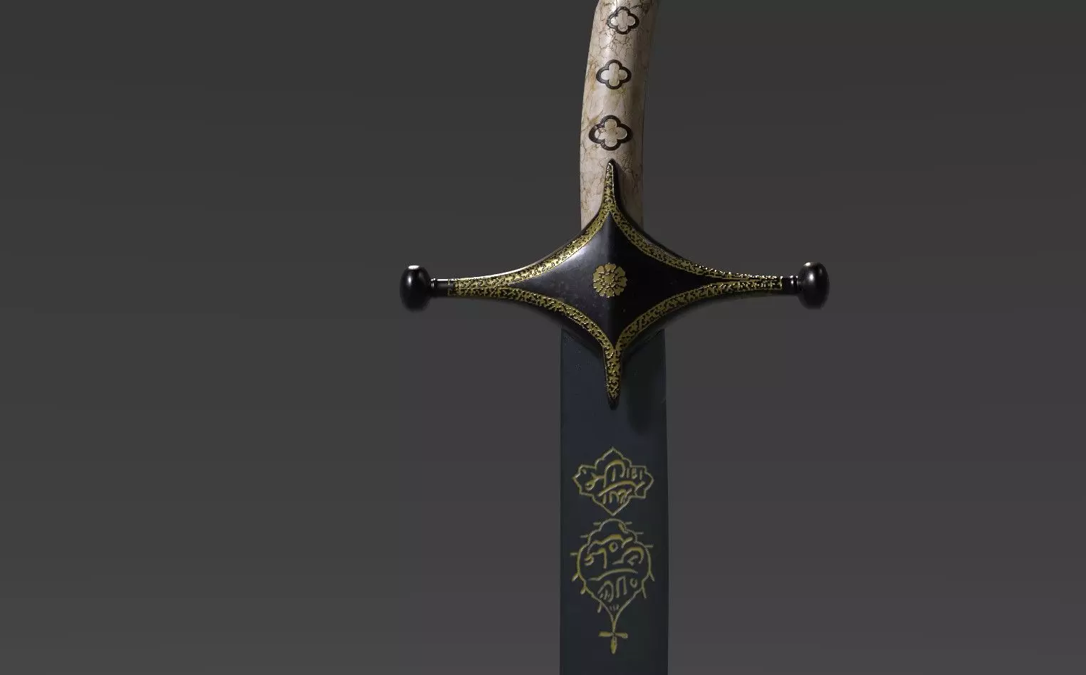 3D model of a Persian saber, late 18th century. Persia. There is a decorative design of the weapon and the brand of a gunsmith. Along with the saber there are leg ones.