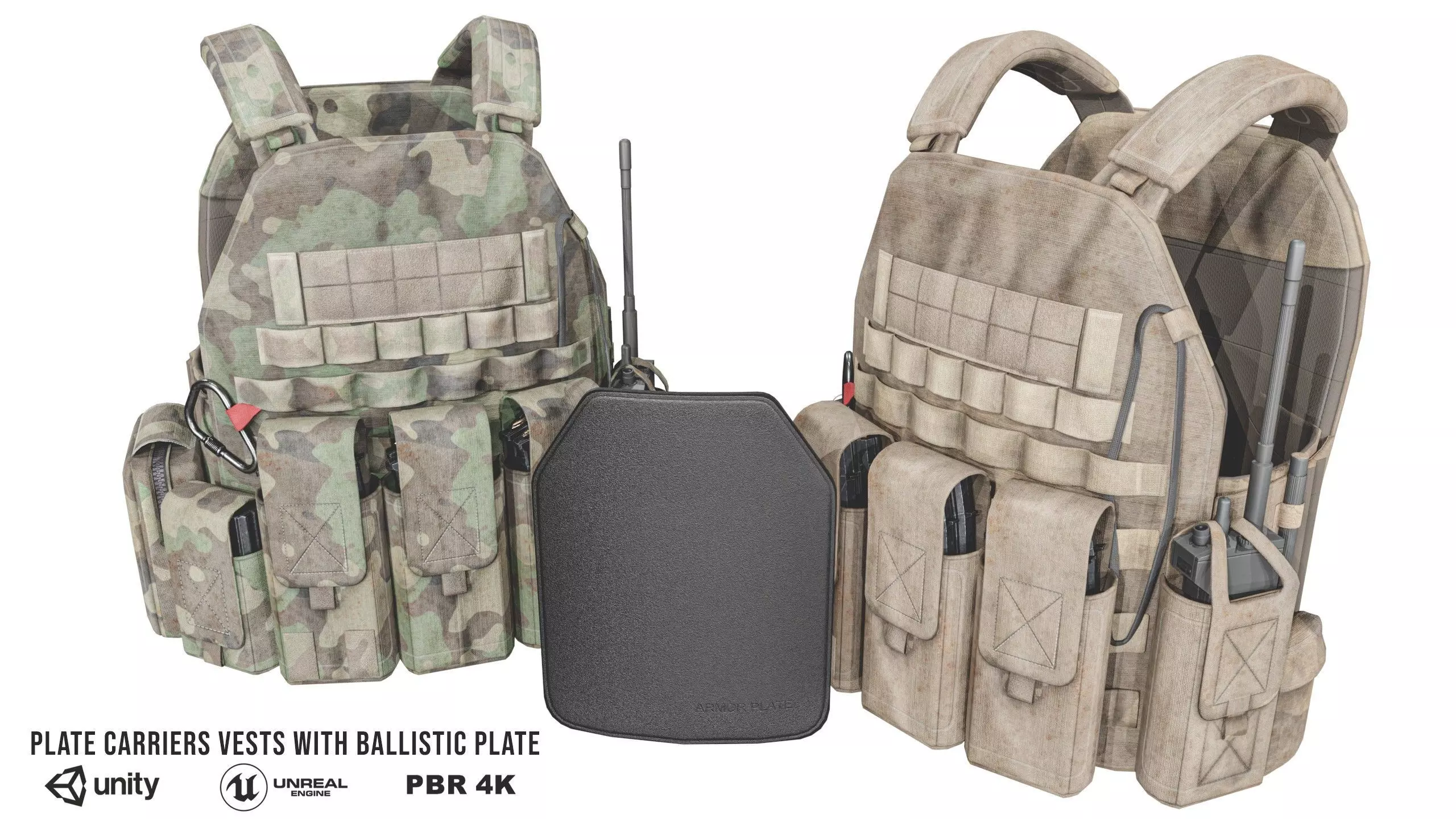 Plate Carriers Vests With Armour Plate Low-poly 3D model