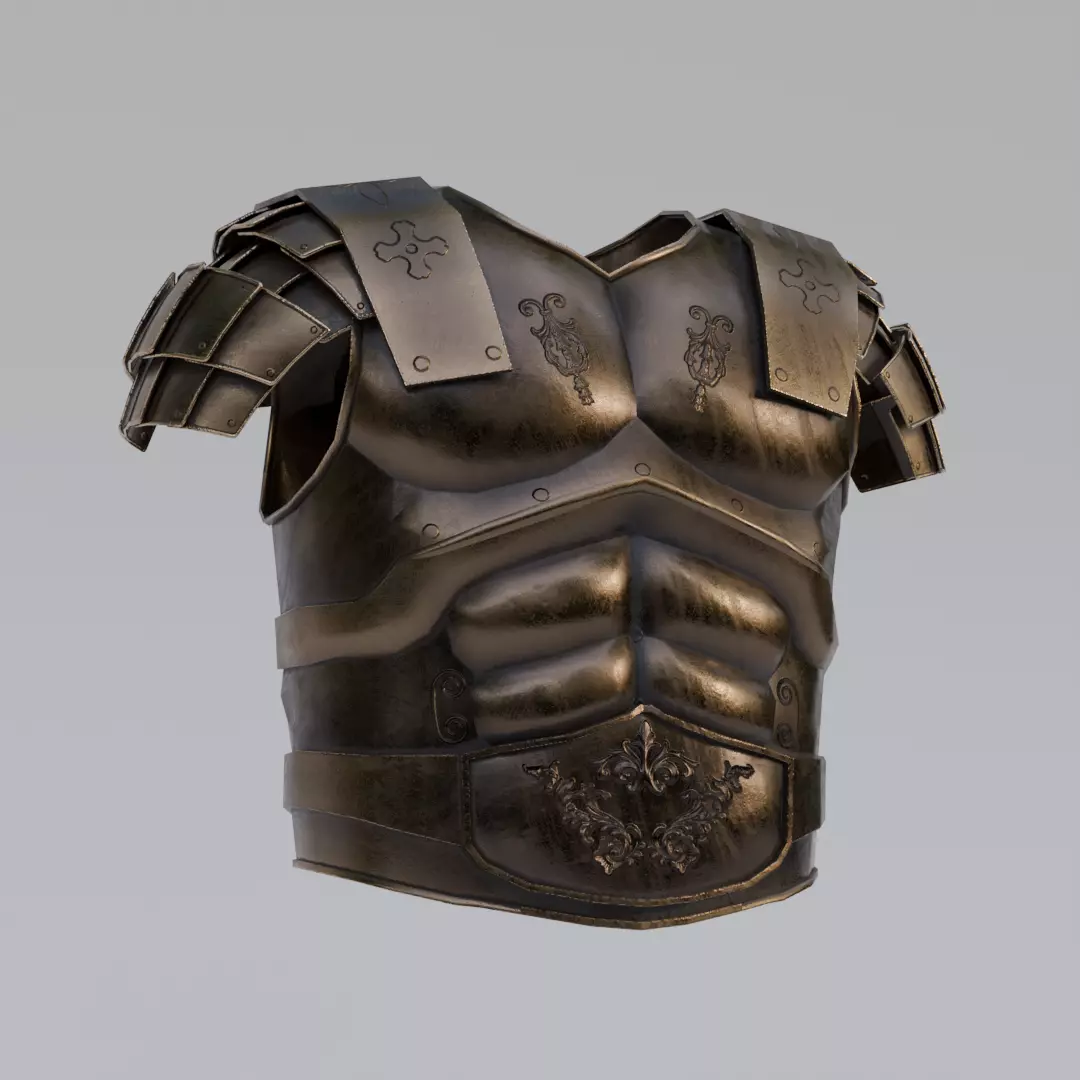 This is a highly detailed Roman-style cuirass designed for cinematic shots, game development, historical visualization, and 3D animation. The model features clean topology, realistic surface detailing, engraved ornaments, and a beautifully aged metallic finish.