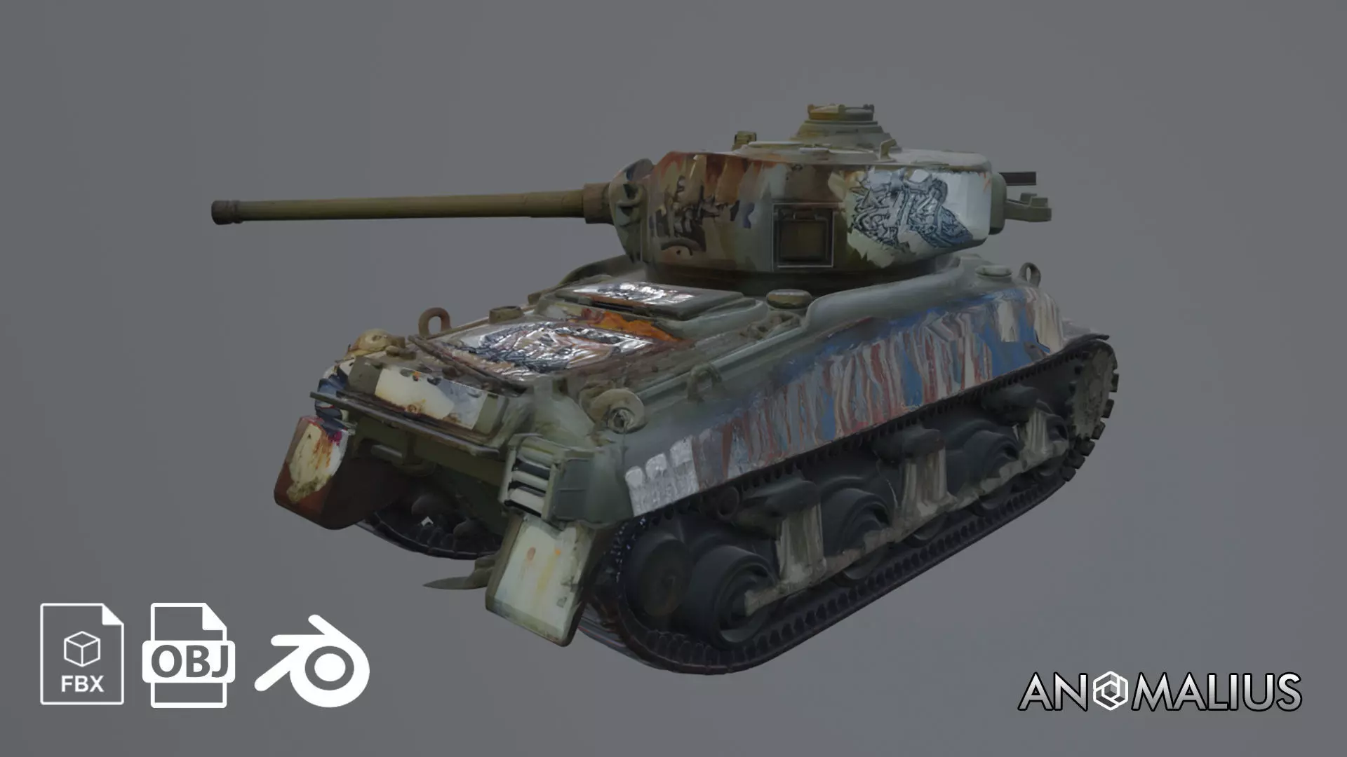 A heavily damaged World War II–era tank wreck. Works well as background set dressing or a focal prop in isometric RTS, strategy games, or cinematic shots.