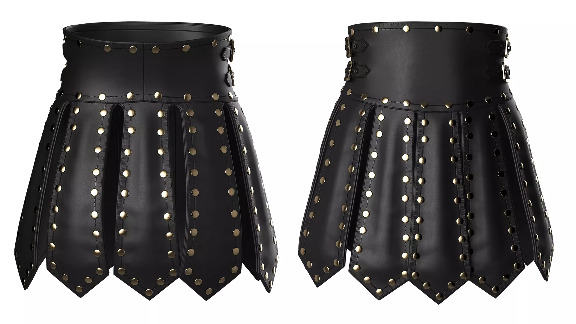 A Viking-style Skirt Armor crafted for fierce shieldmaidens and Norse warriors. Ideal for historical, fantasy, or game characters. This 3D model features rugged leather textures, metal detailing, and a battle-worn aesthetic, making it perfect for RPGs, animations, and cinematic projects.
