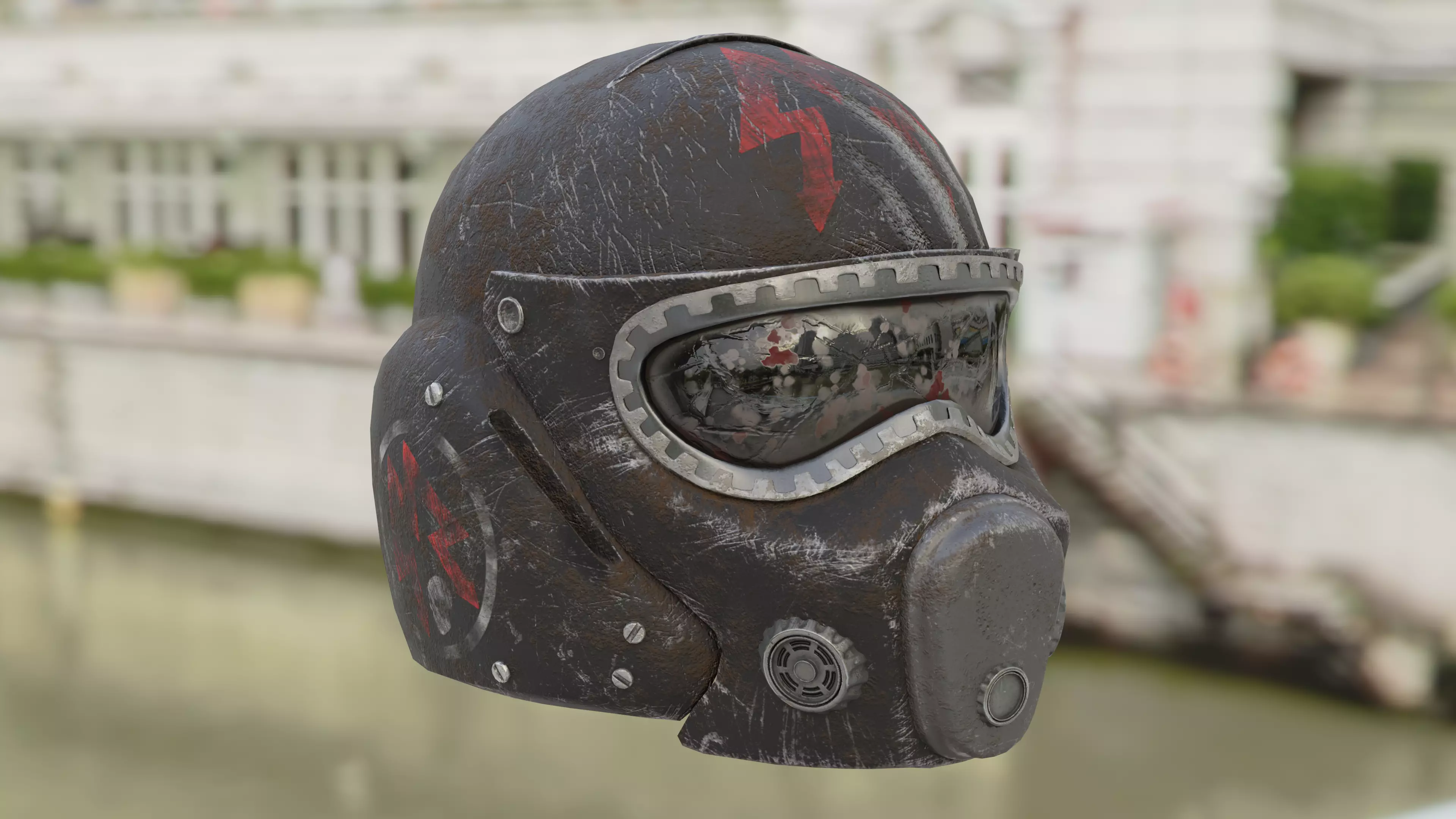 A 3D helmet model from the game Metro 2033. In this work, I applied texturing for the first time using my new graphics tablet. I am very pleased with the result!