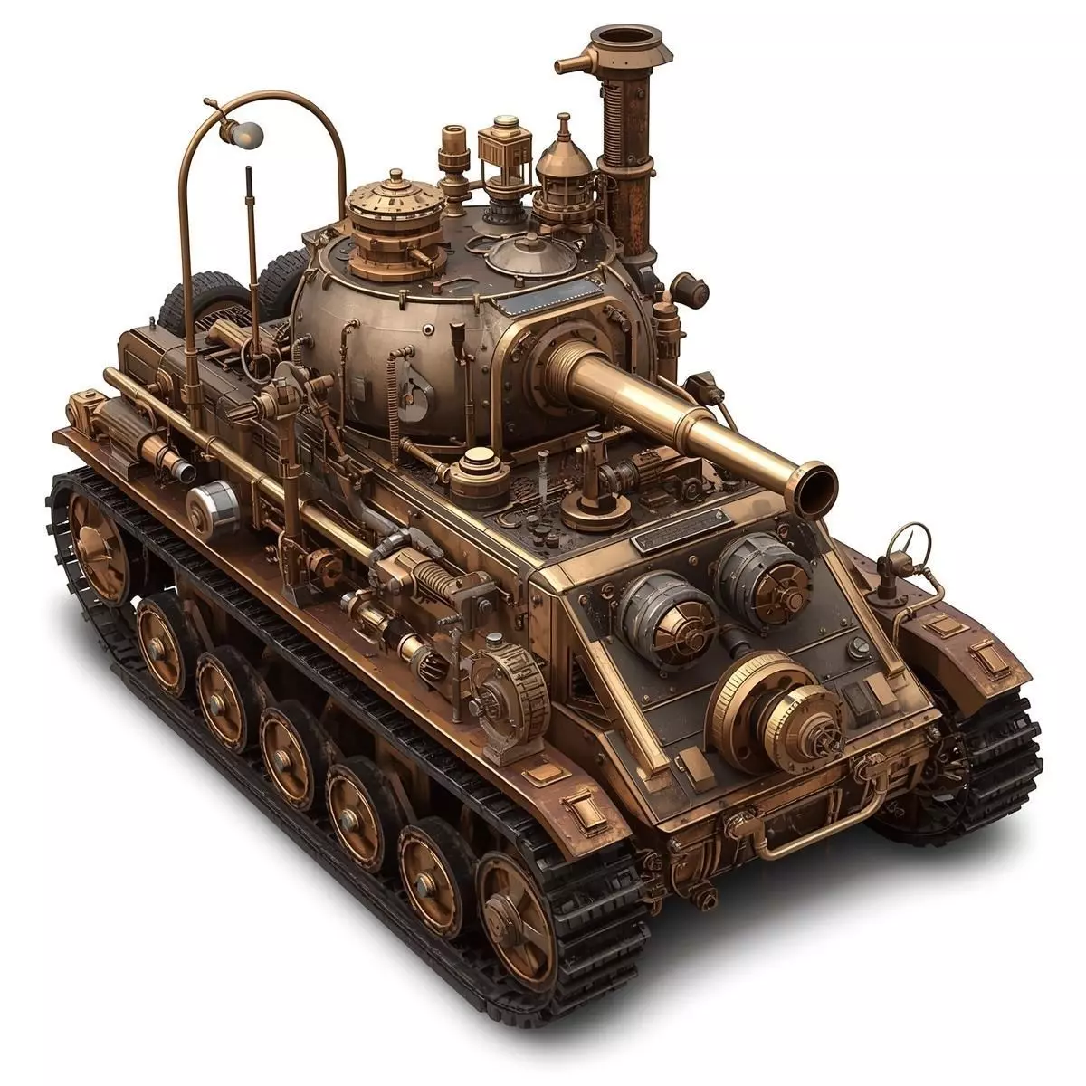 Tagssteampunk, tank, battle tank, war machine, victorian, industrial, brass, steel, steam engine, cannon, treads, machinery, vehicle, 3d model, game