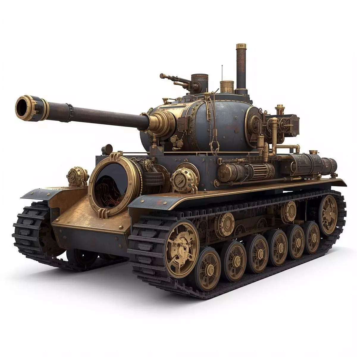 Tagssteampunk, tank, battle tank, war machine, victorian, industrial, brass, steel, steam engine, cannon, treads, machinery, vehicle, 3d model, game asset