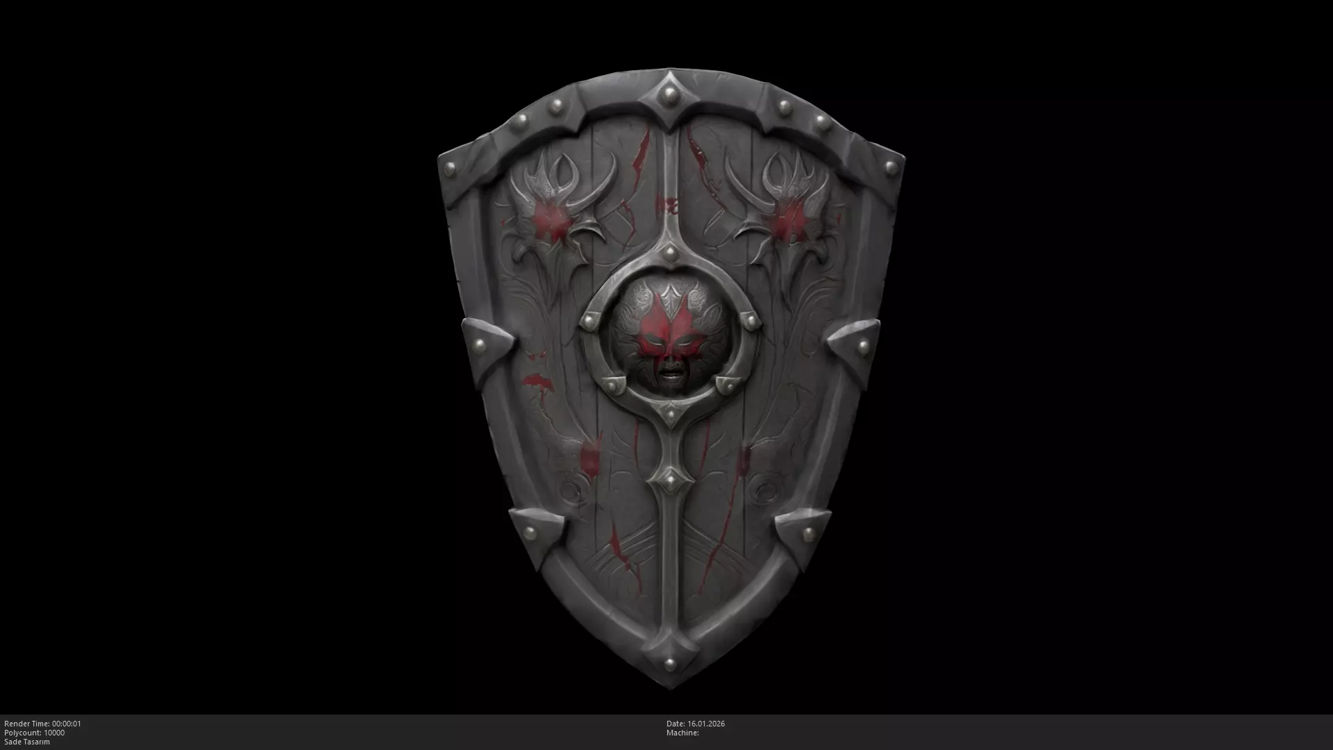 Stylized Dark Knight Shield / Vampire Blood GuardThis is a high-quality, stylized 3D model of a dark fantasy shield. Featuring a blackened steel frame, weathered dark wood, and a central demonic mask with blood-red accents, this model is perfect for dark knights, vampire lords, elite gothic guards, or as a legendary equipment item in RPG and adventure games.