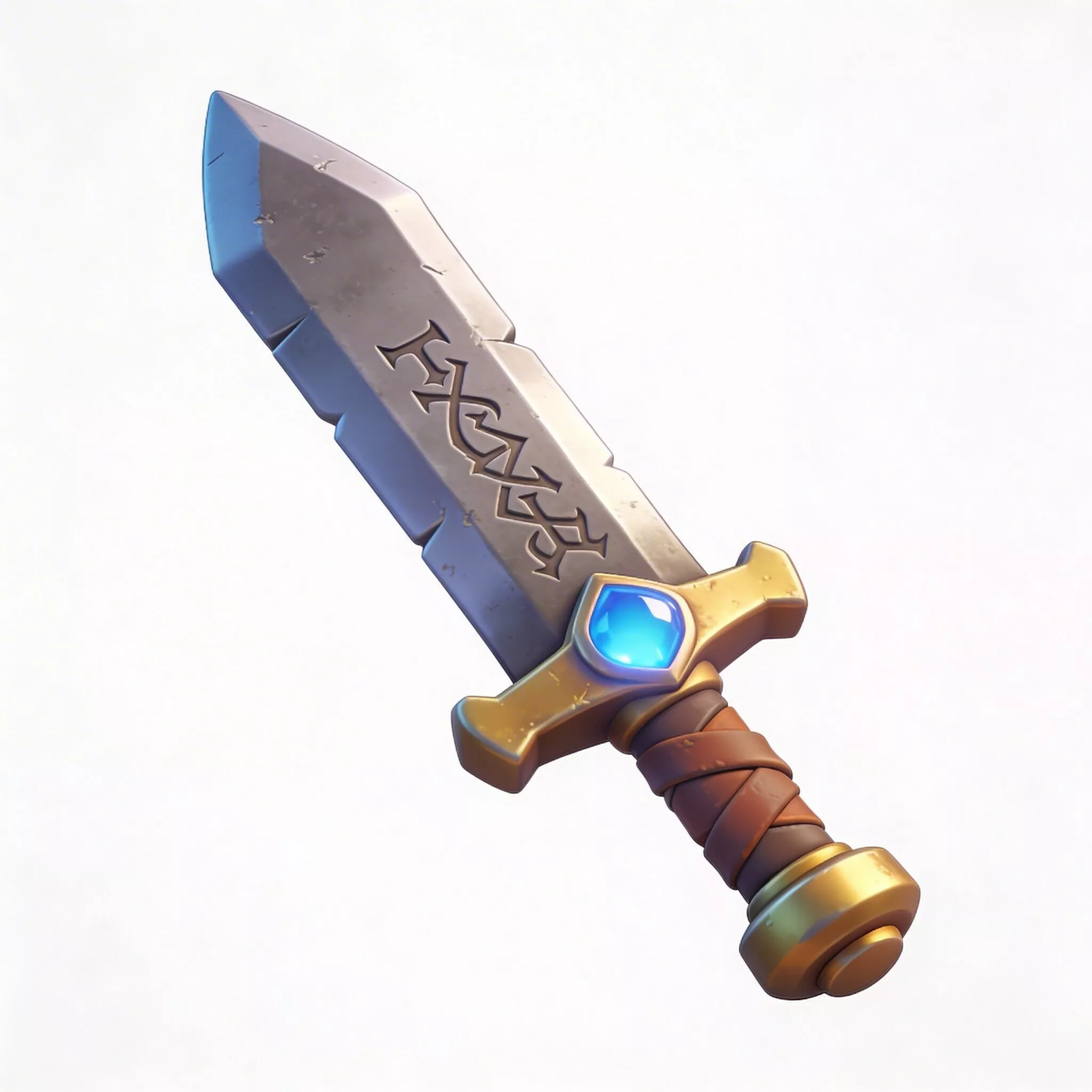 Tagssword broadsword stylized fantasy weapon medieval blade glowing gem rune rpg game prop asset iron gold leather magic combat knight