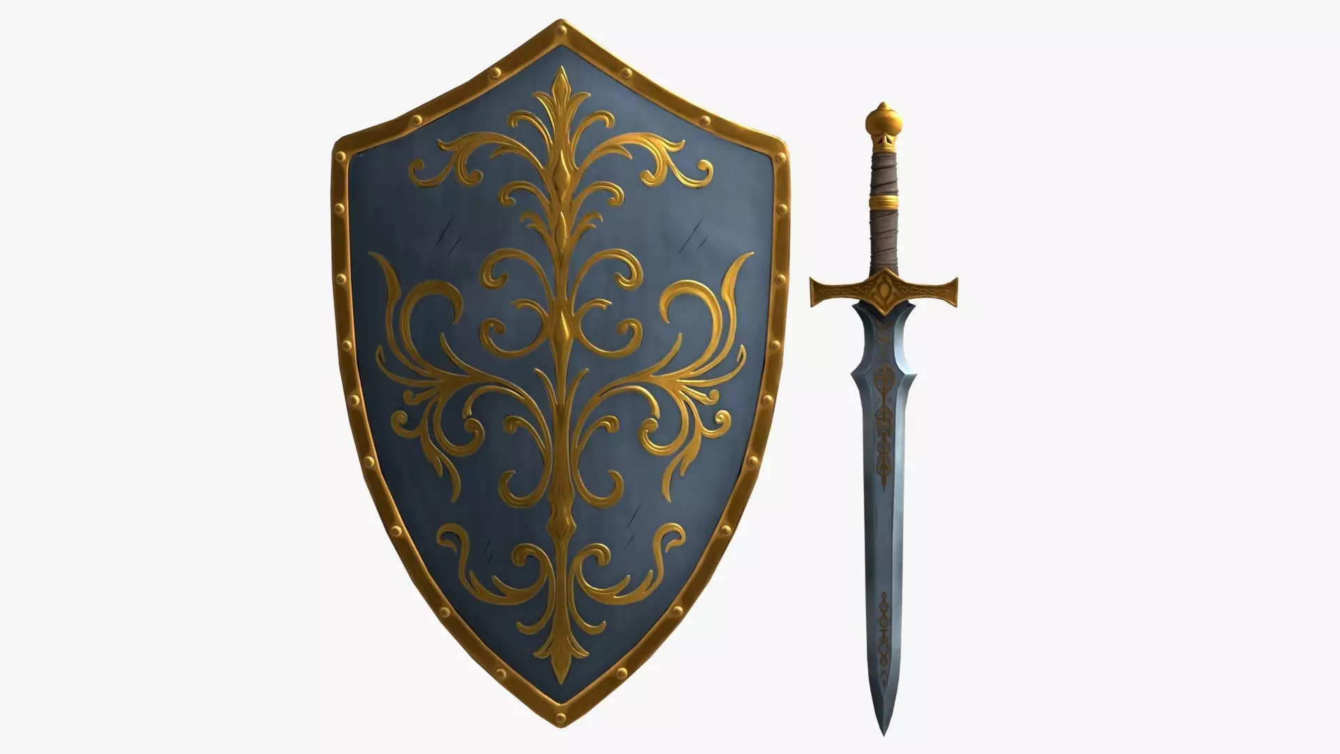 Stylized sword and shield set with a cartoon / anime-inspired fantasy design. Features clean shapes, decorative details, and a readable silhouette ideal for games, animation, and stylized environments.Includes 4K .png PBR textures, ready for rendering and real-time engines. Perfect for fantasy characters, RPG assets, and animated projects
