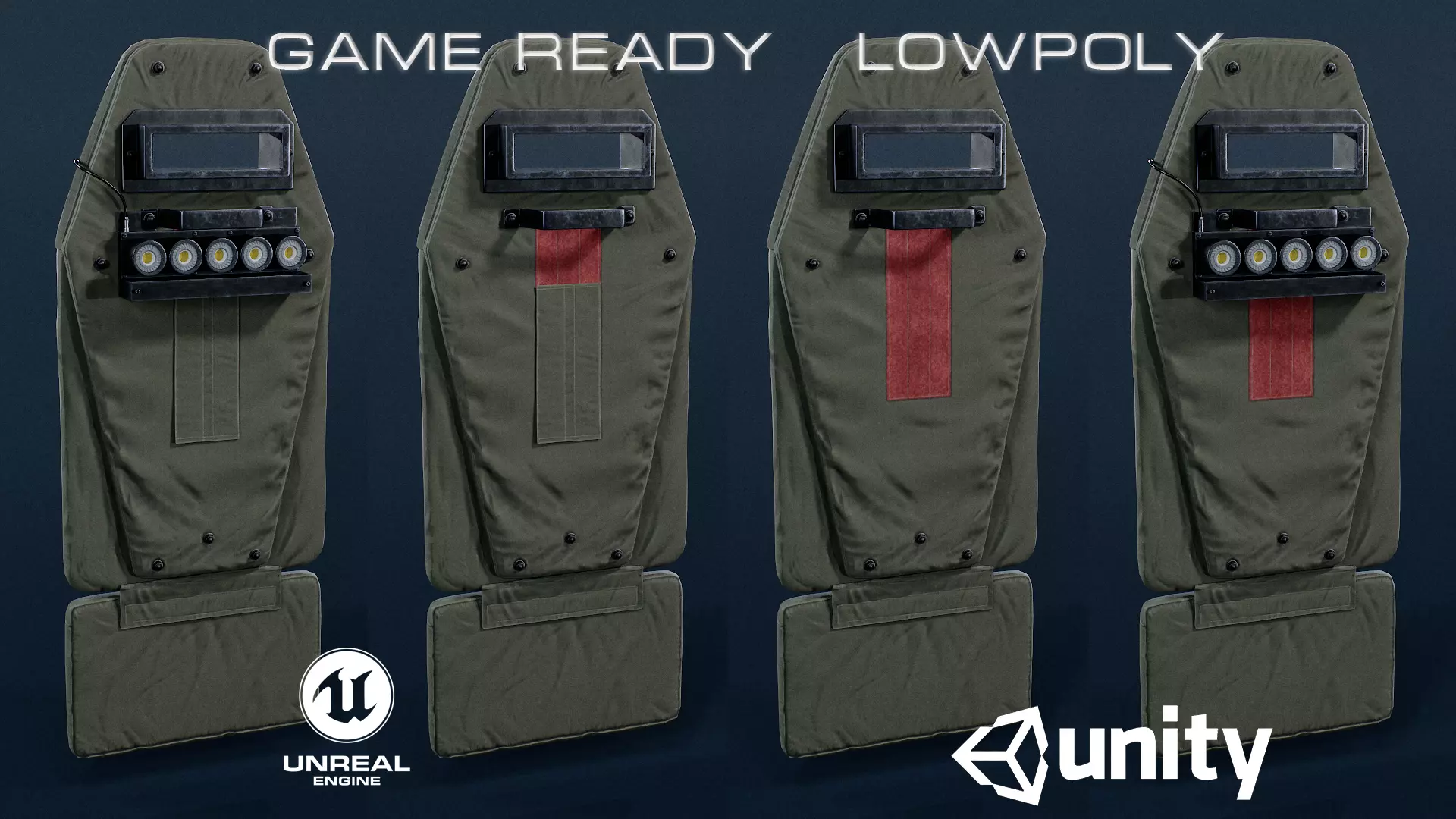 Vant VM ballistic shield low-poly 3d models ready for Virtual Reality (VR), Augmented Reality (AR), games and other real-time apps.