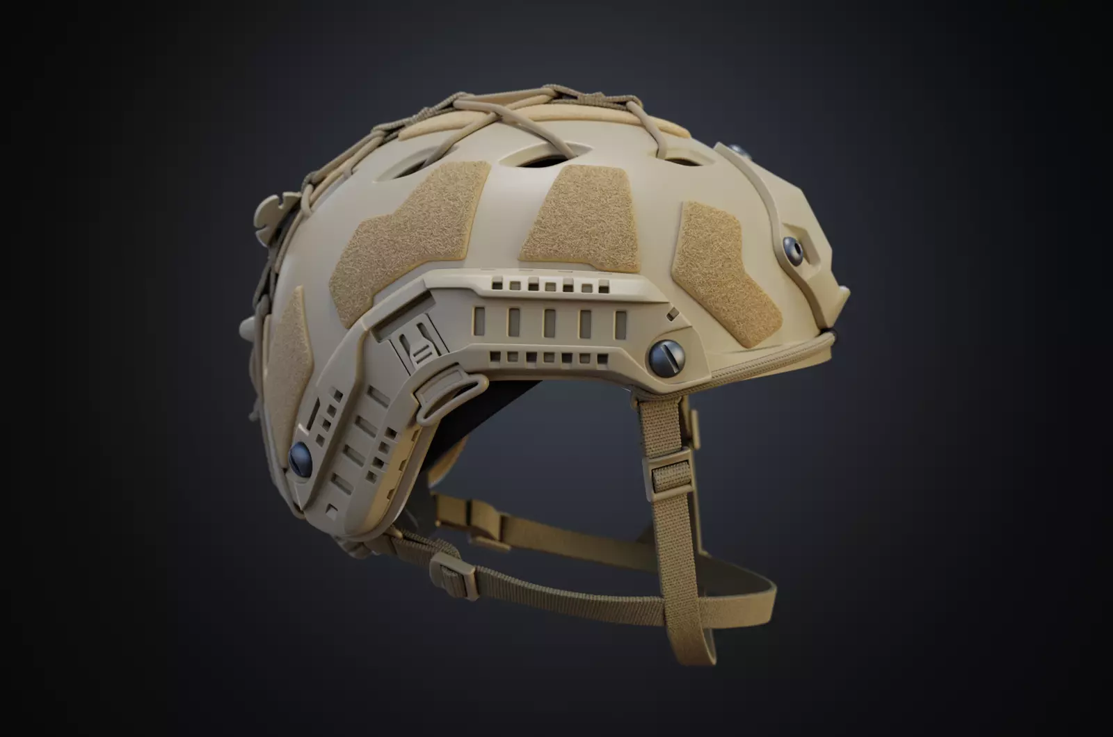 Details of some parts (chin strap, NVG lanyard, elastic braided strap, etc., see screenshots for examples) were achieved using the Displace and Decimate modifiers, which are retained. The model is largely unUV-coded except for parts using Displace. Personally, I find Blender's Decimate modifier easier to use than Zbursh's Decimate Master; however, switching the editor on and off can cause a slight lag, so be prepared.
