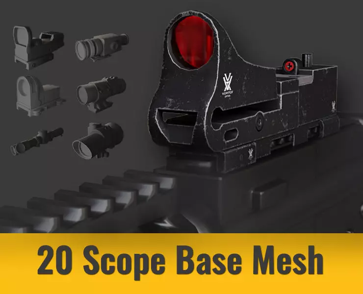 Hello GuysThis Time We Create 20 Low Poly Scope Base Mesh In This Package You Will Receive 20 Guns Scope Base Mesh In 2 Budget(Low Poly).All Of The 40 Scopes Are Unwrapped And Have Clean Mesh.So You Can Bake Them Or Make High Poly Of Them Easily.