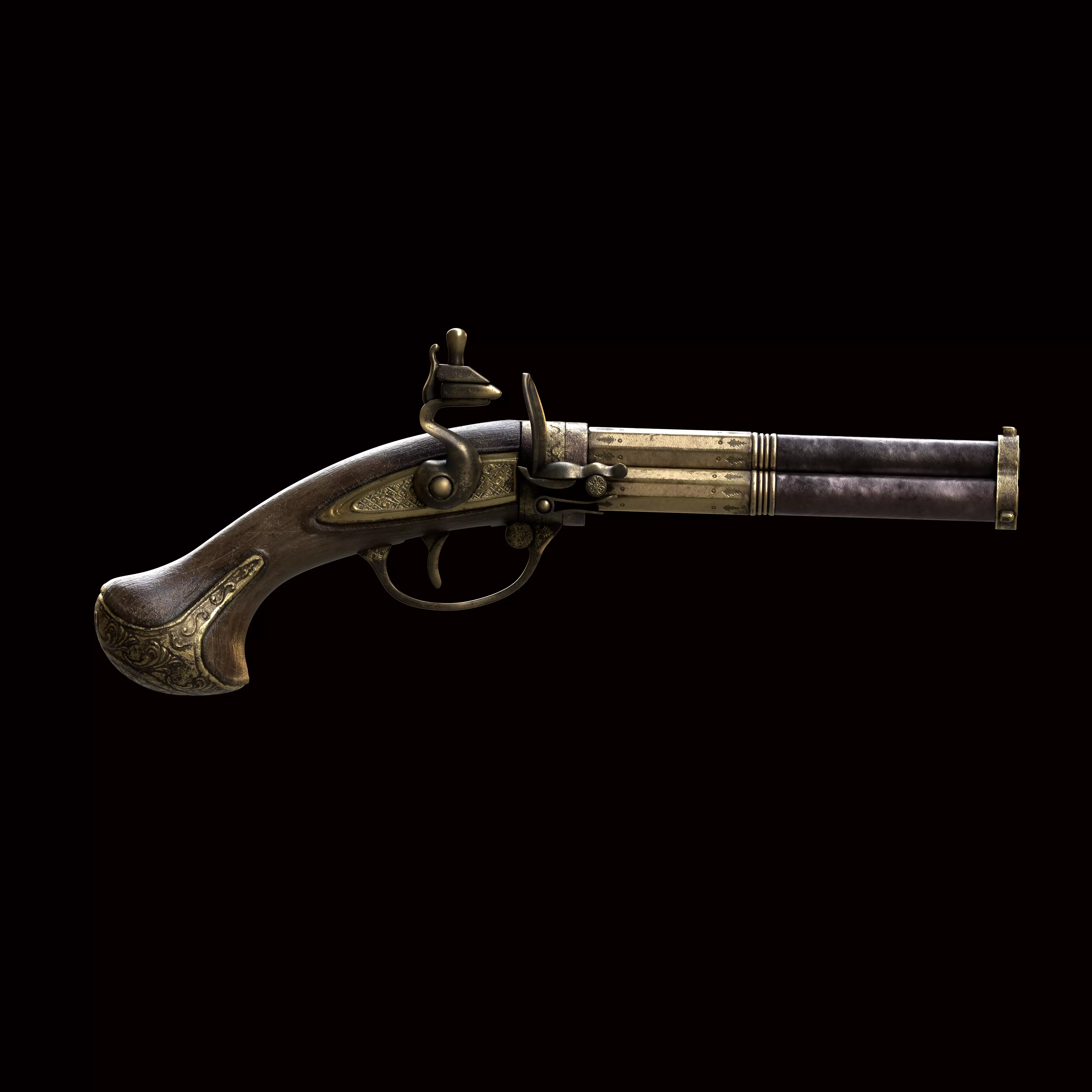 3 Barrel Flintlock Pistol 3D model