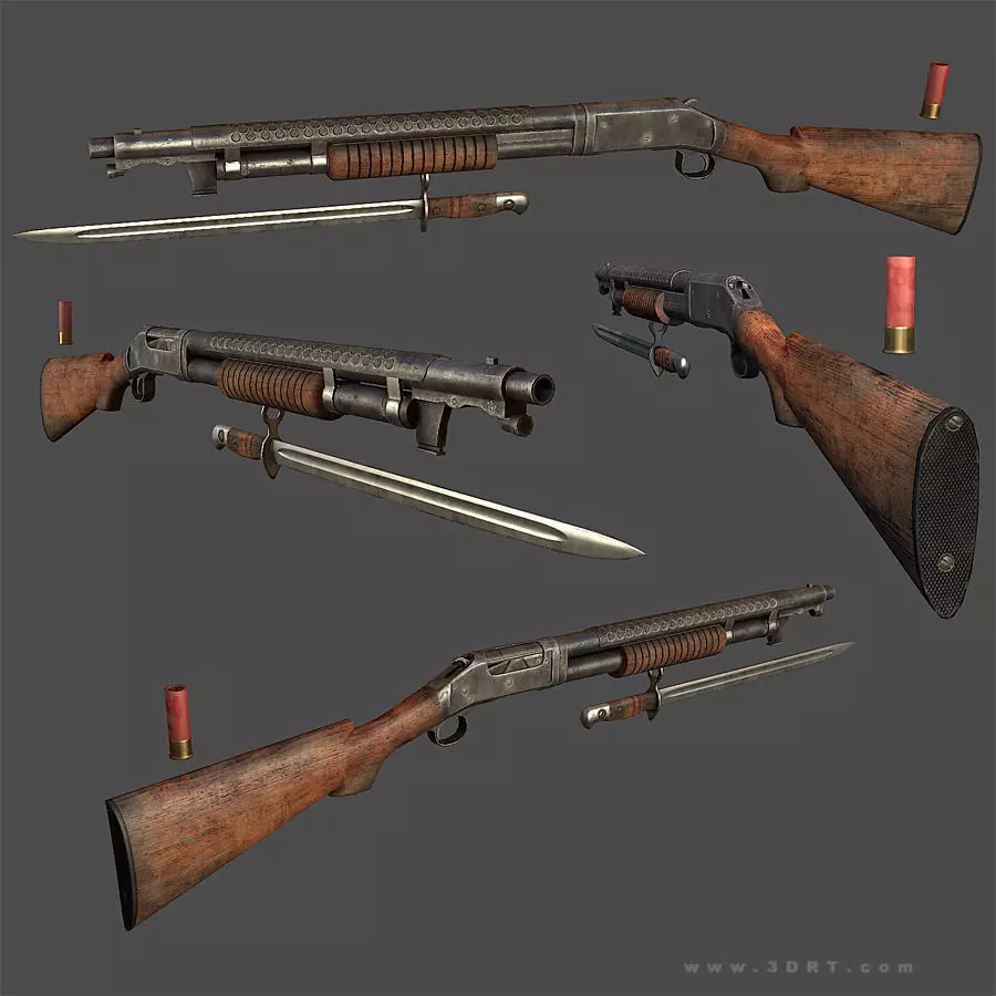 3DRT - Modern Firearms Animated - Winchester m1897 Low-poly 3D model
