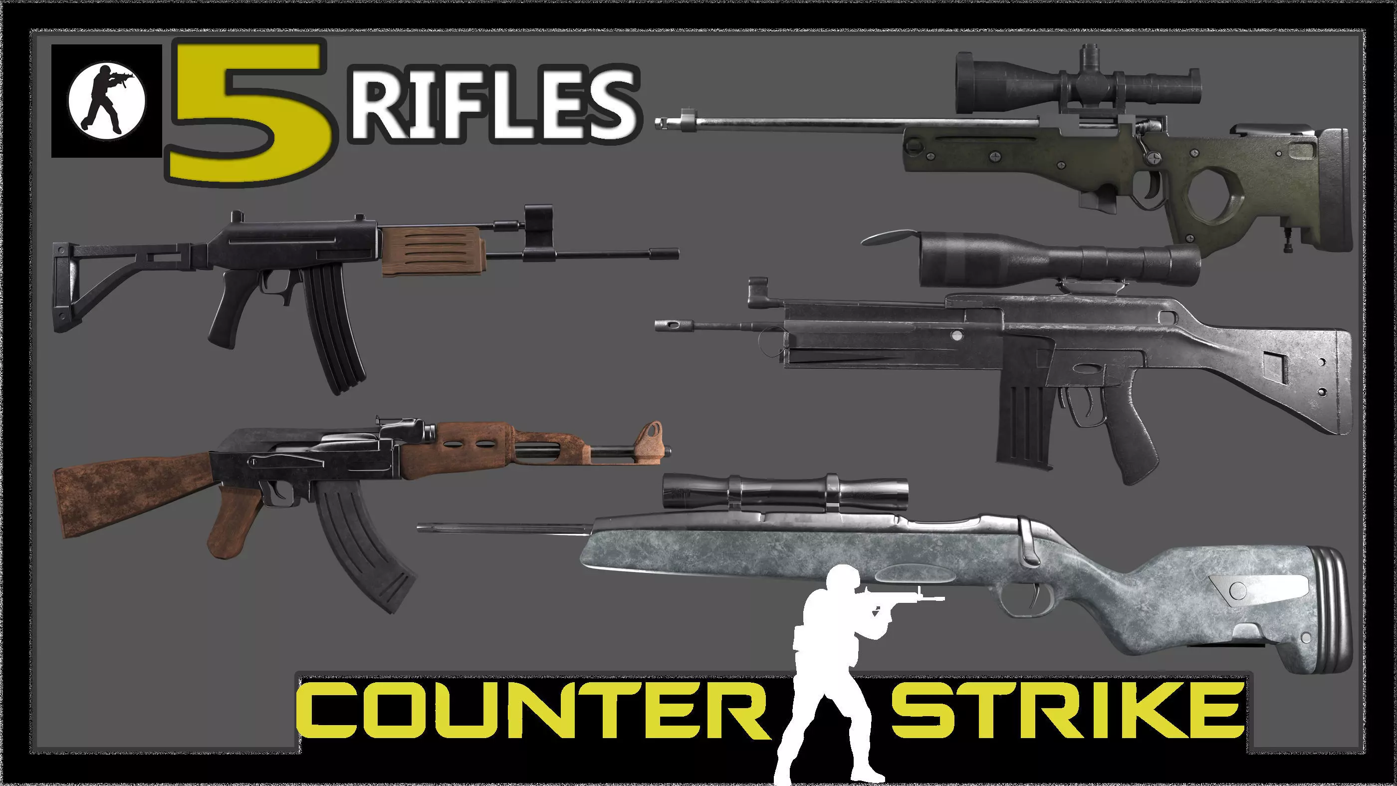 This set includes 5 rifle guns from the popular game counter strike