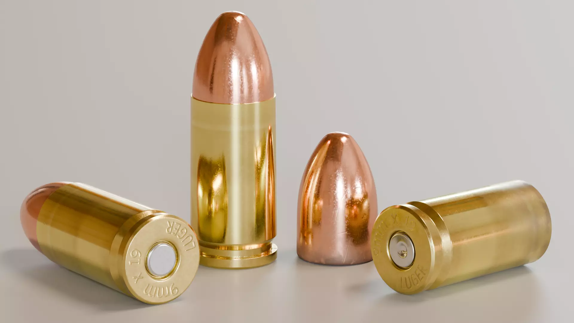 This is a dimensionally accurate, photorealistic model of a 9x19mm Luger / Parabellum bullet cartridge that includes both an unfired cartridge and the components after firing. The detail in the model extends only to surfaces that can be seen externally after manufacturing or after firing, though the unfired projectile and unloaded cartridge (with primer installed) can be used as standalone assets, too.