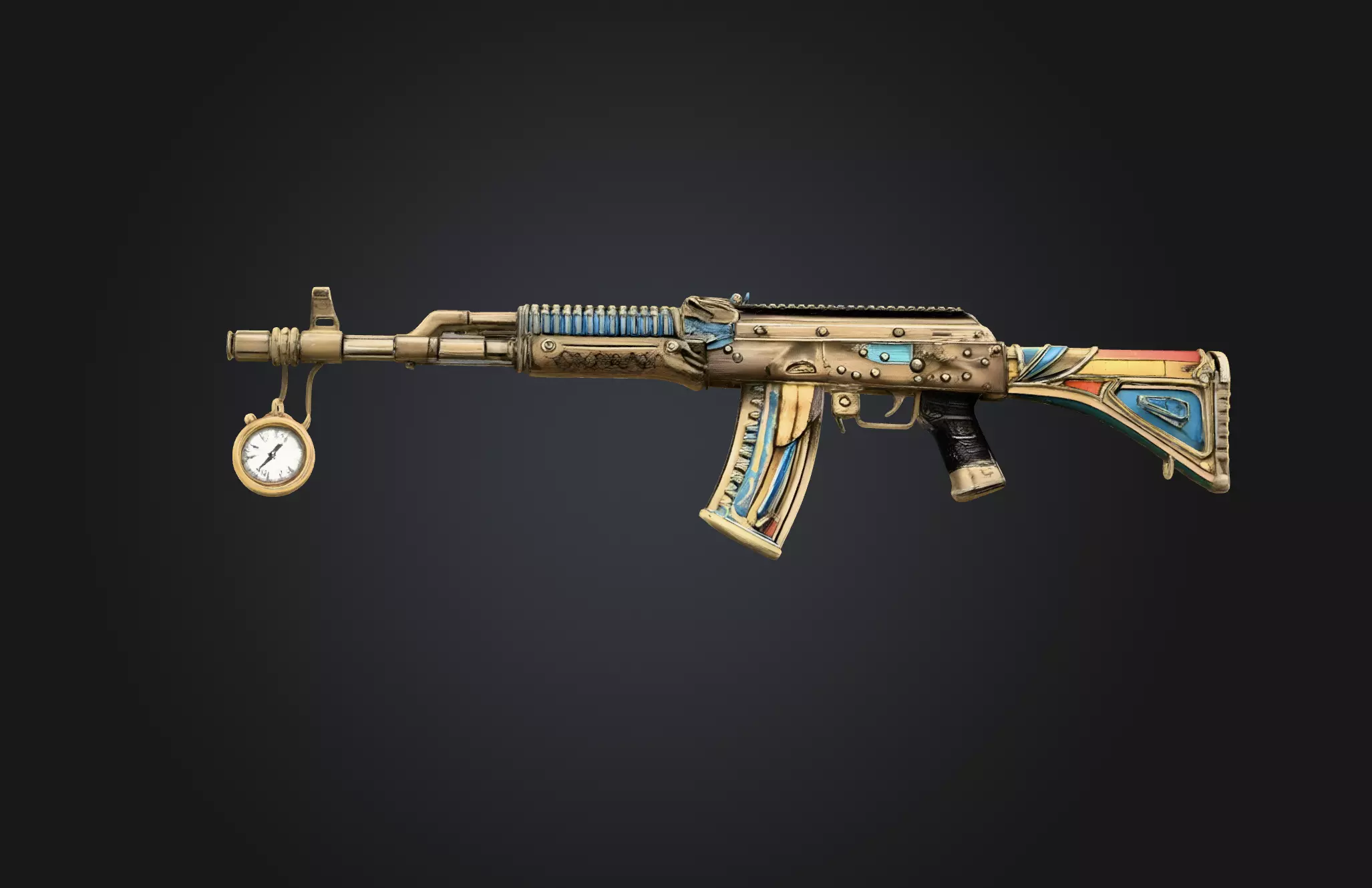 AK-47 Style Rifle – Clock Skin EditionThis is a high-quality AK-47 style 3D rifle model featuring a custom clock-inspired cosmetic skin design. Built for video games, cinematics, animations, and real-time rendering.The design incorporates detailed clock faces, mechanical time elements, metallic gears, and precision dial graphics integrated into a tactical rifle platform. The fusion of industrial mechanics and weapon styling creates a unique steampunk-meets-modern aesthetic ideal for FPS and stylized shooter games.What You Get:• Fully textured AK-47 style rifle 3D model• Custom clock / timepiece weapon skin• Blender (.blend) file included• Game-ready topology• PBR texture workflow• Clean UV mapping• Organized and optimized file structureTechnical Details (Insert Your Specs):• Polycount: [Insert count]• Texture Resolution: [2K / 4K]• File Formats: BLEND, FBX, OBJ• Rendering: PBRPerfect For:• FPS game development• Unreal Engine projects• Unity projects• Cinematic animations• Steampunk weapon packs• Shooter game cosmetic collectionsImportant:This is a digital 3D model for creative and entertainment use only. No physical weapon is included.Custom skins and themed variations available upon request.