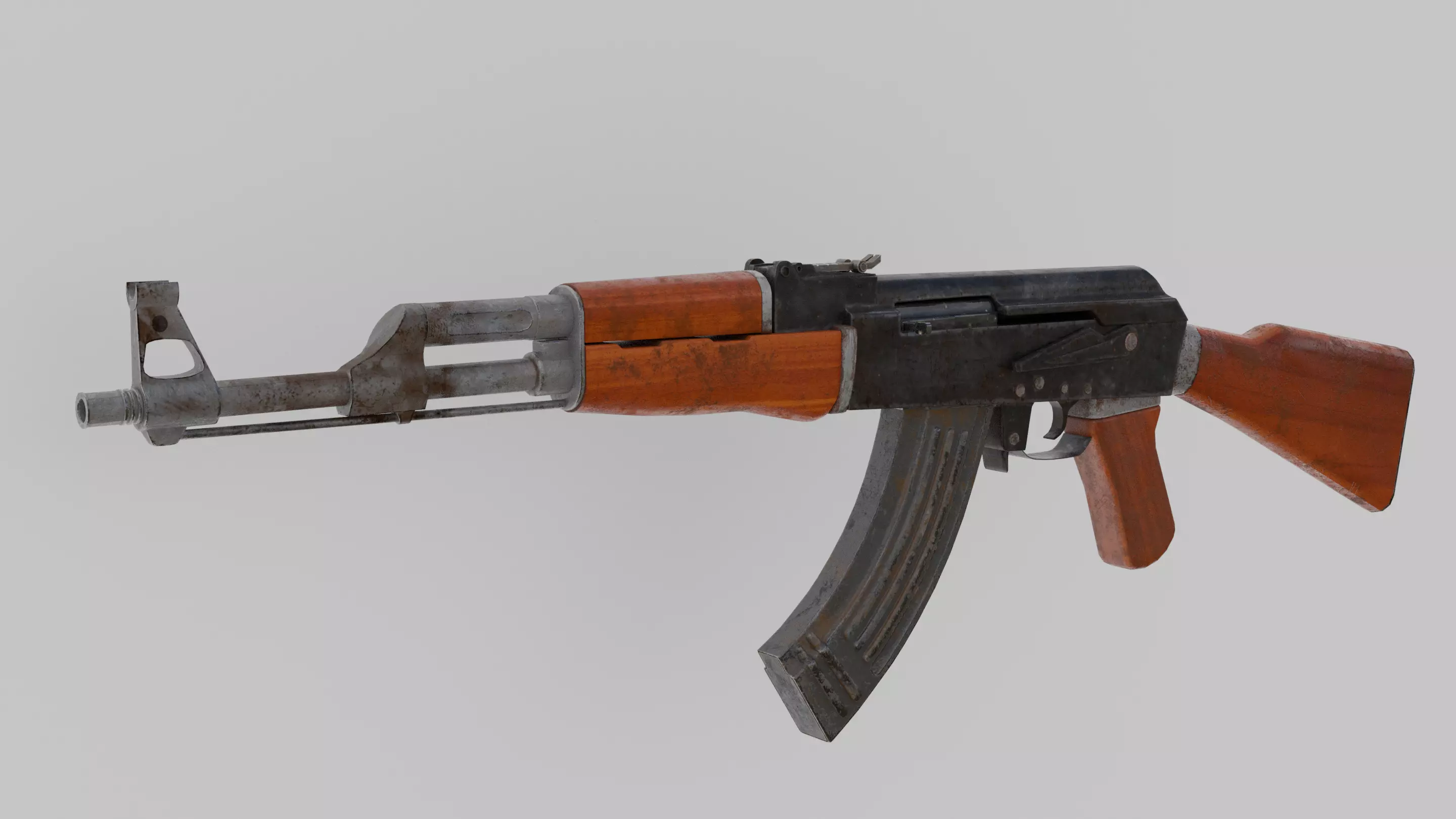 This is a my 3d model of an AK-47 that I modelled using blender 2.93 then textuered using substance painter. All textures are 1k-2k resolution (the bigger pieces are 2k). This model can be animated with 59,997 tris.