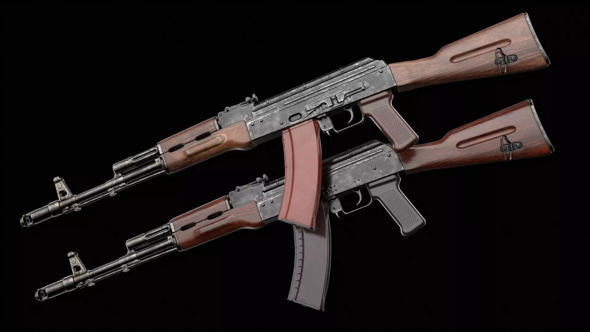 Includes: AK-74 (standard version) + AK-74N (AK rifles ending with N have small side plank / scope rail mount on the left side of receiver, so it's easy to just hide or delete that part to get another modification).
