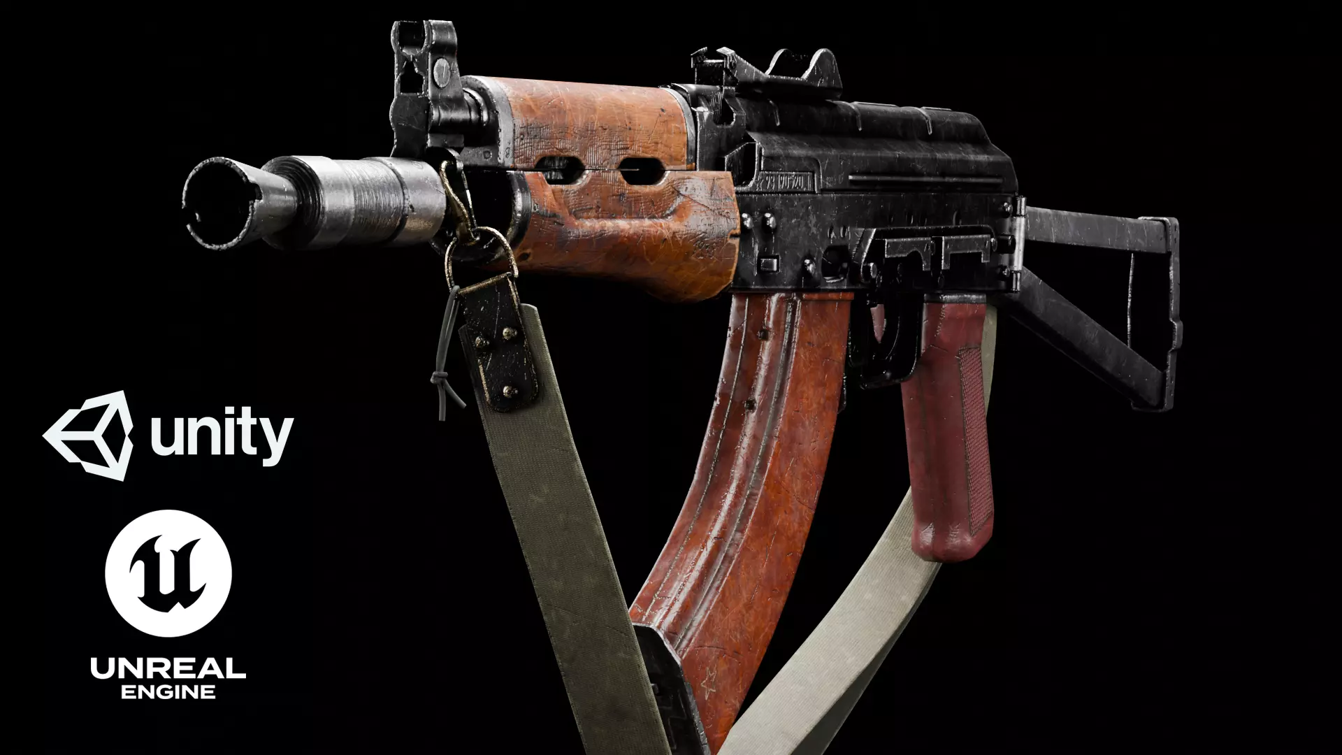 Textures: Utilize Physically Based Rendering (PBR) textures (2) 4K maps for main rifle body and furniture (2) 2k maps for sling and internal parts . Essential maps include: