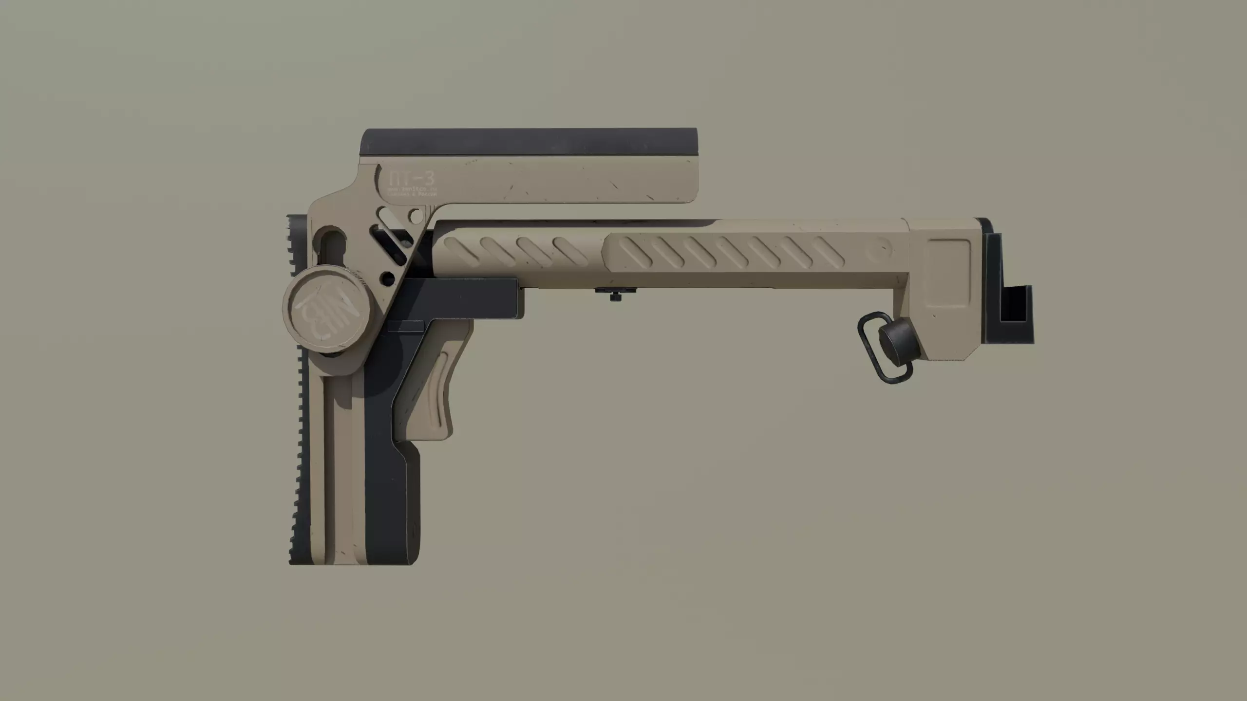 High Quality PT-3 Zenit Buttstock Model - Game/VR Ready 2K Baked Textures