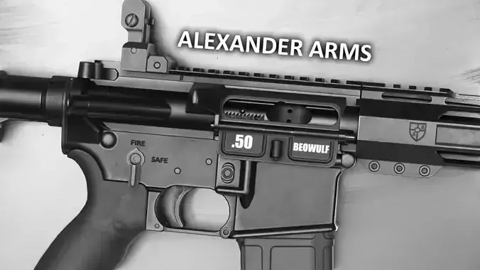 Alexander Arms .50 Beowulf Tactical AR-15 rifle. .50 Beowulf is a short to medium range cartridge initially designed to stop car engines at vehicle checkpoints. But had since been marketed for recreational sport shooting and hunting.
