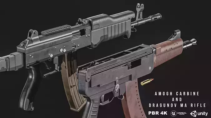 AMOGH Carbine And Dragunov MA Rifle Low-poly 3D model