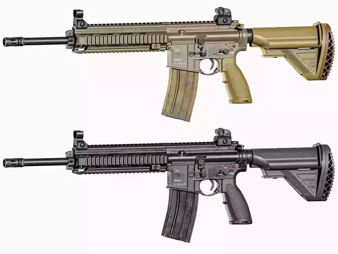 Game-Ready high-quality 3d model HK416 rifle 5.56 × 45 caliber for Unreal Engine, Unity and other PBR game engines, renderers, first Person Shooters, VR games, and your other projects.